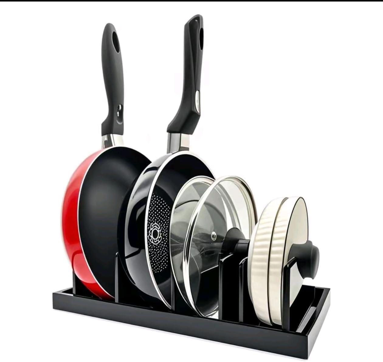 Bamboo Pot Lid Organizer for Cabinet & Kitchen Counter, Pan Lid Organizer Inside Cabinet, Pot Lid Holder, Sheet Pan Rack, Adjustable Pot Cover Holder Rack for Countertop, Under Cabinet Black