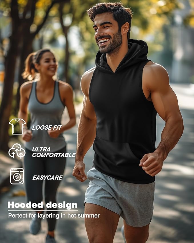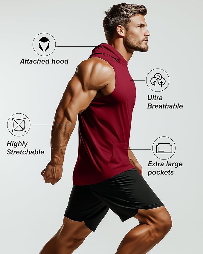 • Sleeveless and Hooded Design: the men's hooded tank tops feature sleeveless, hooded and kangaroo pocket design, accentuating your physique and muscles of arms while having a practical pocket in front can store your belongs