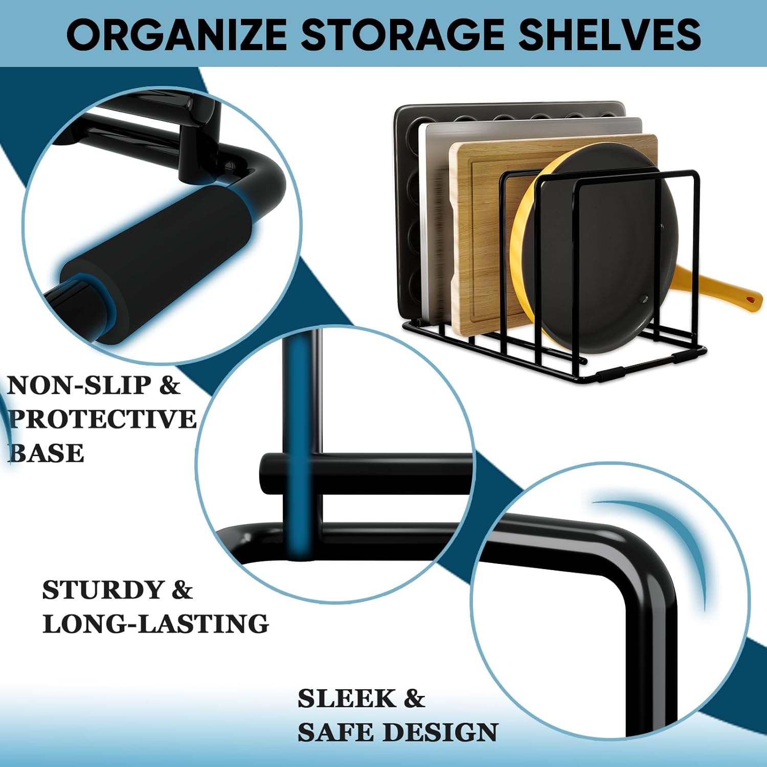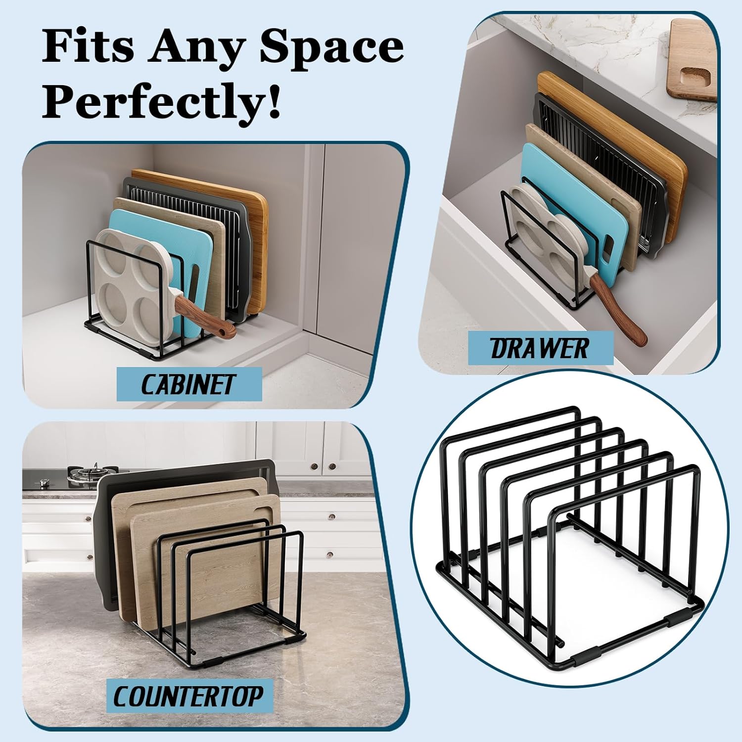 2-Pack Cutting Board Organizer, 5-Slot Steel Kitchen Storage Rack for Cutting Boards, Baking Trays, and Thin Pans - Compact Clutter-Free Solution