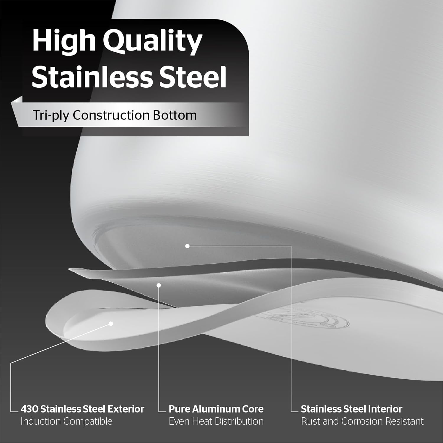 - [Heat Evenly & Quickly] – Metals are carefully layered to harness the best of each, creating an all-purpose cookware that heats quickly, performs consistently, and responds instantly. The thick bottom ensures fast and uniform heat distribution, reducing hot spots and allowing you to cook with precision.