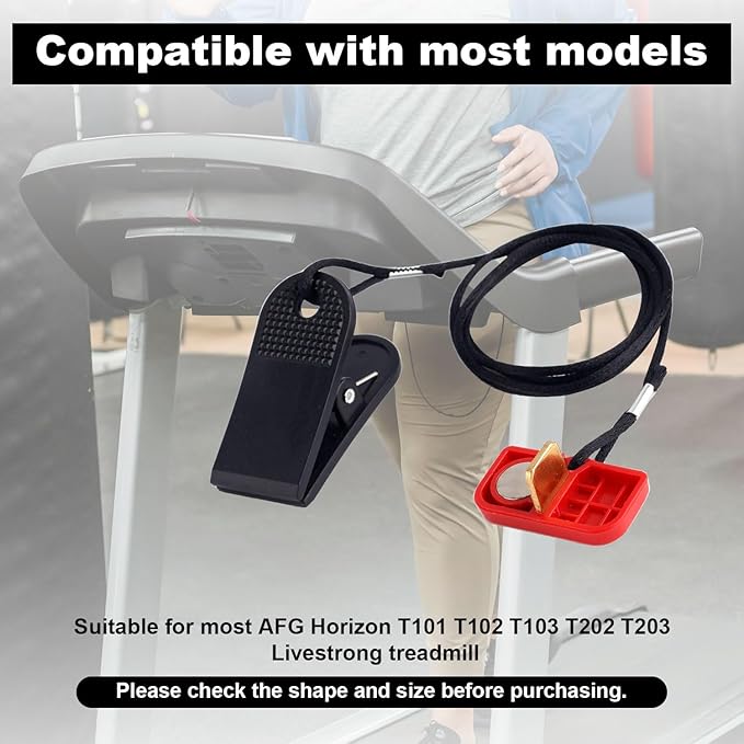 - Compatibility: Our treadmill safety switches are compatible with AFG Horizon T101, T102, T103, T202, T203, TR5.0, 7.0AT, T8S, T7.1 and Livestrong running machines. Please note that our product isn’t sponsored or endorsed by the brand it fits, including AFG Horizon and Livestrong.