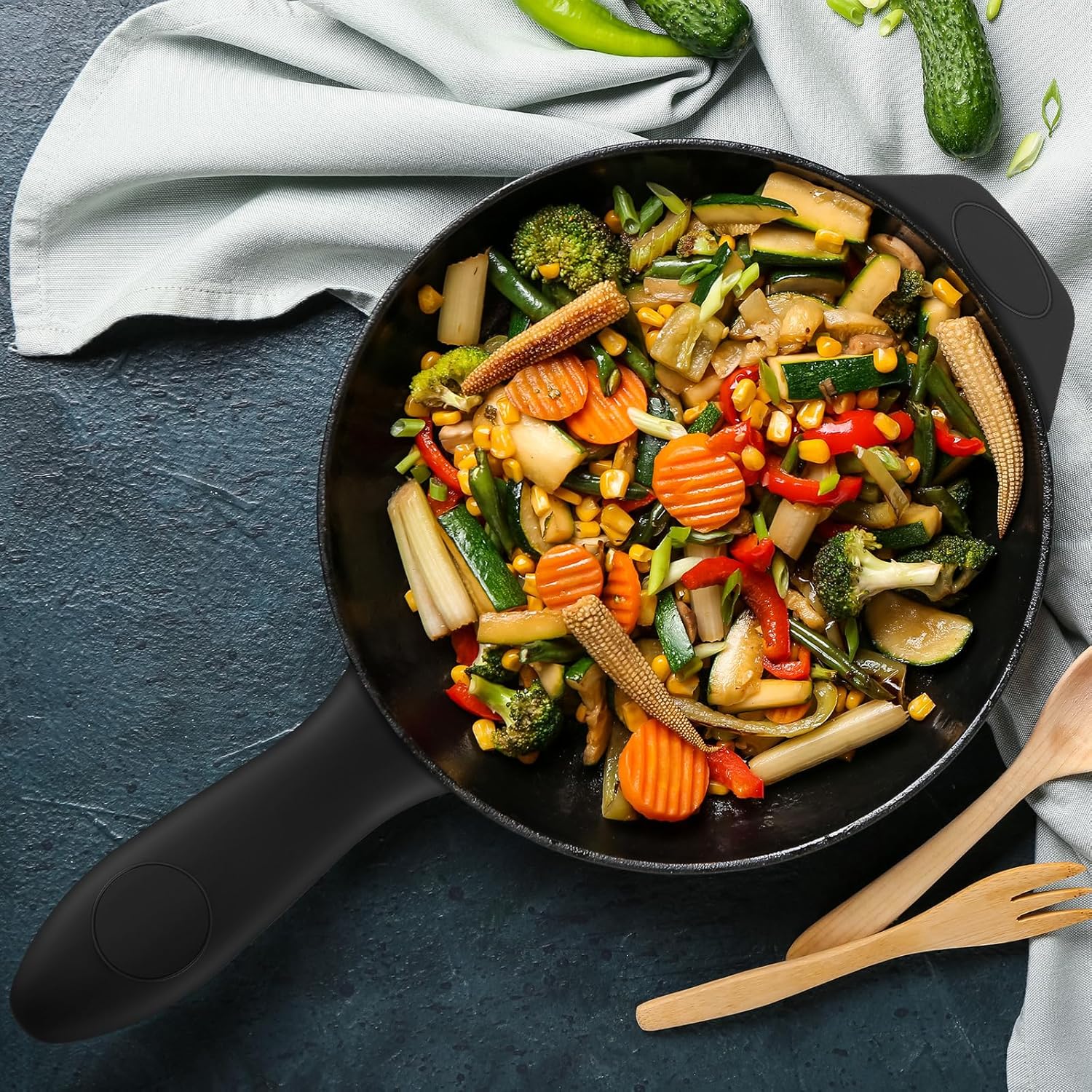 Domensi 4 Pcs Silicone Hot Handle Holder Set Cast Iron Skillet Handle Covers Heat Resistant Silicone Assist Handle Holder for Frying Pans Cast Iron Skillet Griddles Cookware(Black)