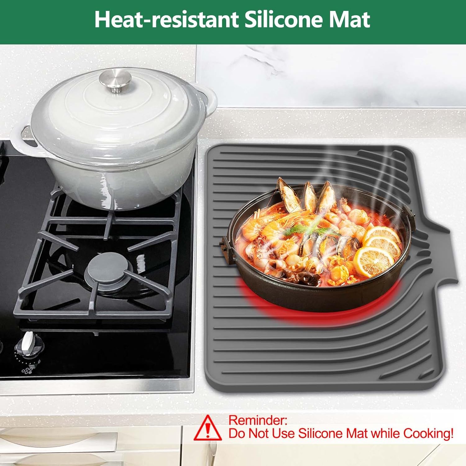 - Anti-Slip and Heat-Resistant: Dish mat drying kitchen mat has a great anti-slip design, keeping dishes, fruits, veggies and glassware steady. Besides, it's heat-resistant up to 450°F (230°C), safeguarding countertops well from hot pots and appliances