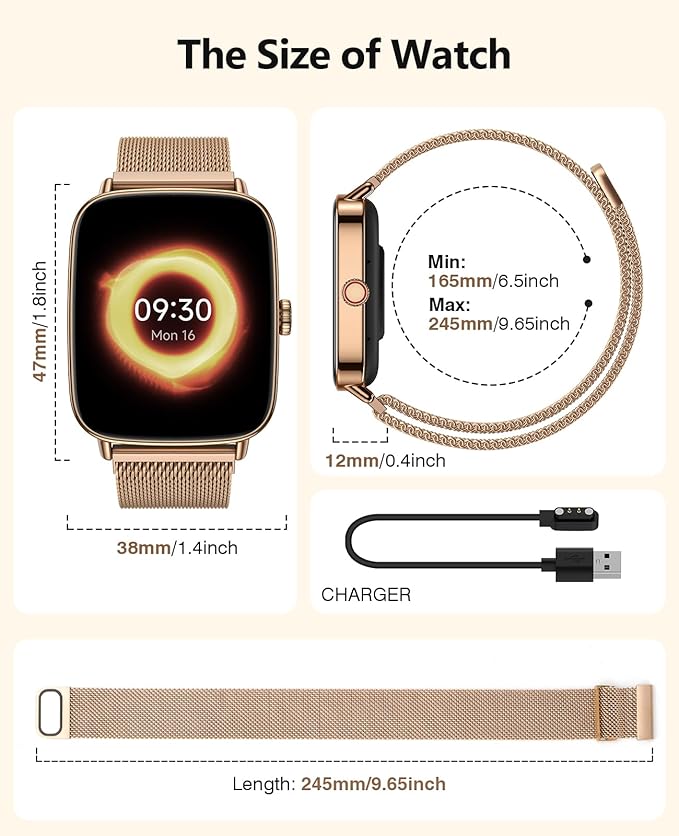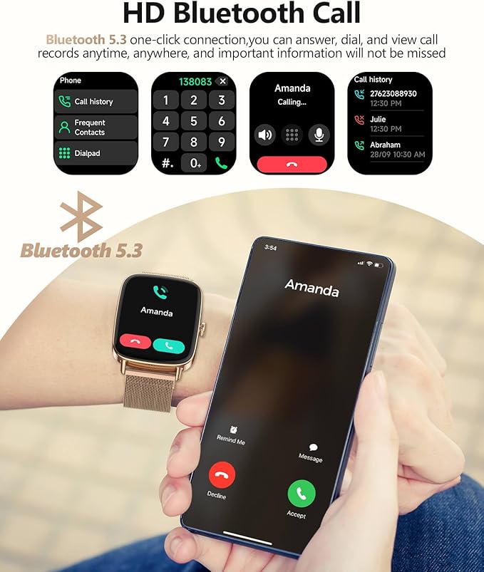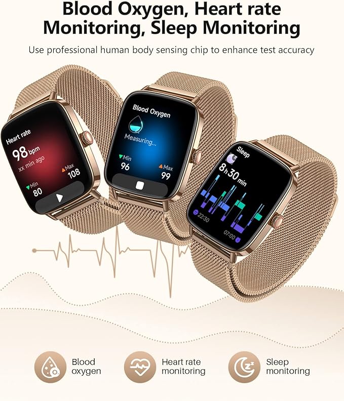 - 【Smart Ecosystem and Interactive Innovation】Invoke Siri and Google Assistant via BT for convenient AI voice control. Dual microphones enhance noise reduction, improving command recognition by 30% in noisy environments. Answering and making calls are effortless, with real-time access to various short messages. Your health manager intelligently reminds you to drink water, take breaks from sitting, monitor blood oxygen and stress abnormalities, and provides synchronized care for female cycles.