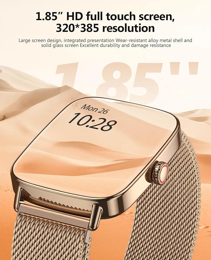2025 Smart Watches for Women, 1.85" AI Voice Smartwatch, 24/7 Heart Rate Monitor, Stress/SpO2/Sleep Tracker, IP68 Waterproof, Weather, 100+ Sports Fitness Tracker for Android iOS Gold Metal