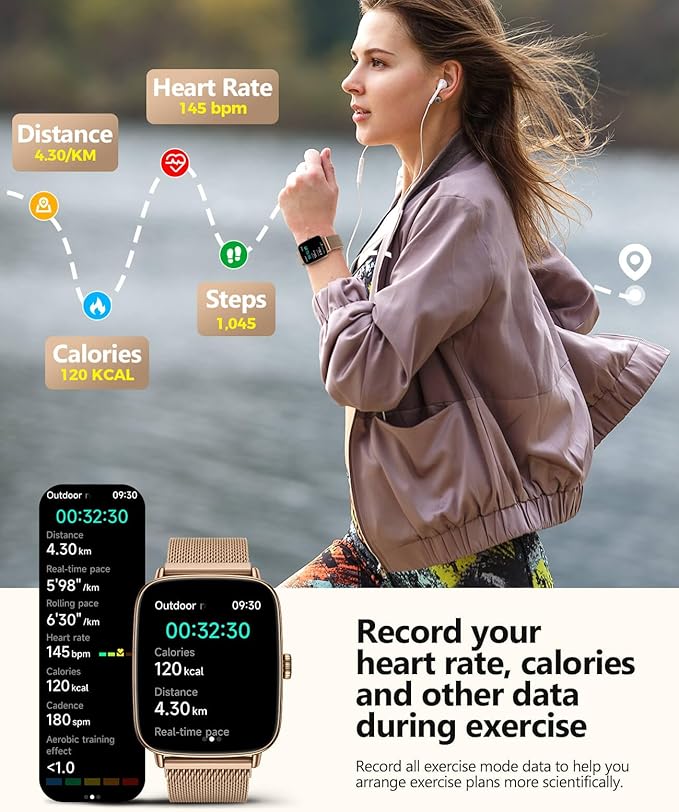- 【Professional Sports Analysis and Training Optimization】With our Smart Watch's intelligent recognition system, you can easily record detailed data for various sports, including calorie consumption, step frequency, distance, heart rate, and exercise duration. Whether for daily exercise or professional training, we provide precise sports analysis and optimization suggestions to help you easily achieve your health goals. Making every workout more efficient and scientific!