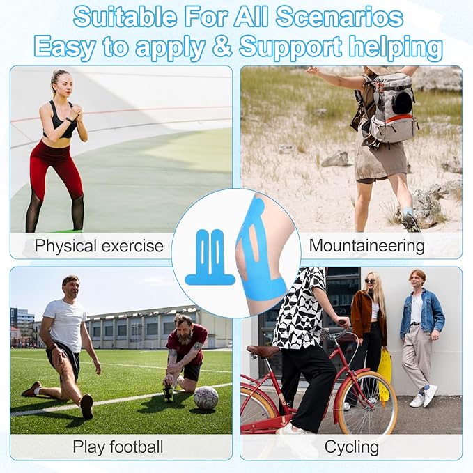 - Skin-Friendly Innovation: Enjoy long-lasting comfort with our muscle tape, our sport tape for pain is made from breathable cotton that’s gentle on all skin types. Designed with ventilation holes, this athletic tape for injuries minimizes irritation, so you'll feel great even during intense sessions while finding relief with our kinesiology tape for knee pain