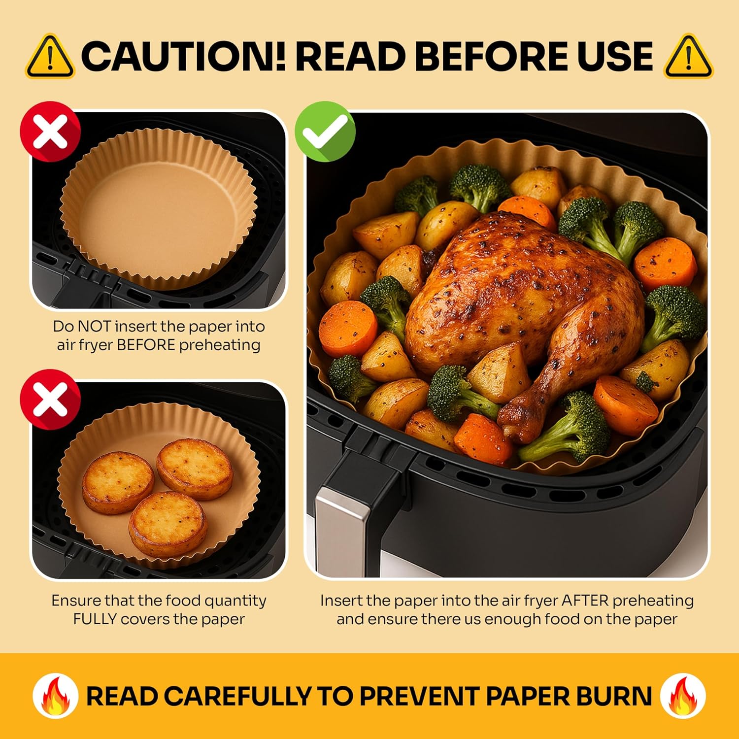 - Customized Convenience: Each pack includes 125 pre-cut 8 inch round liners, eliminating the hassle of trimming or folding to fit your air fryer. Enjoy the convenience of perfectly sized liners every time.