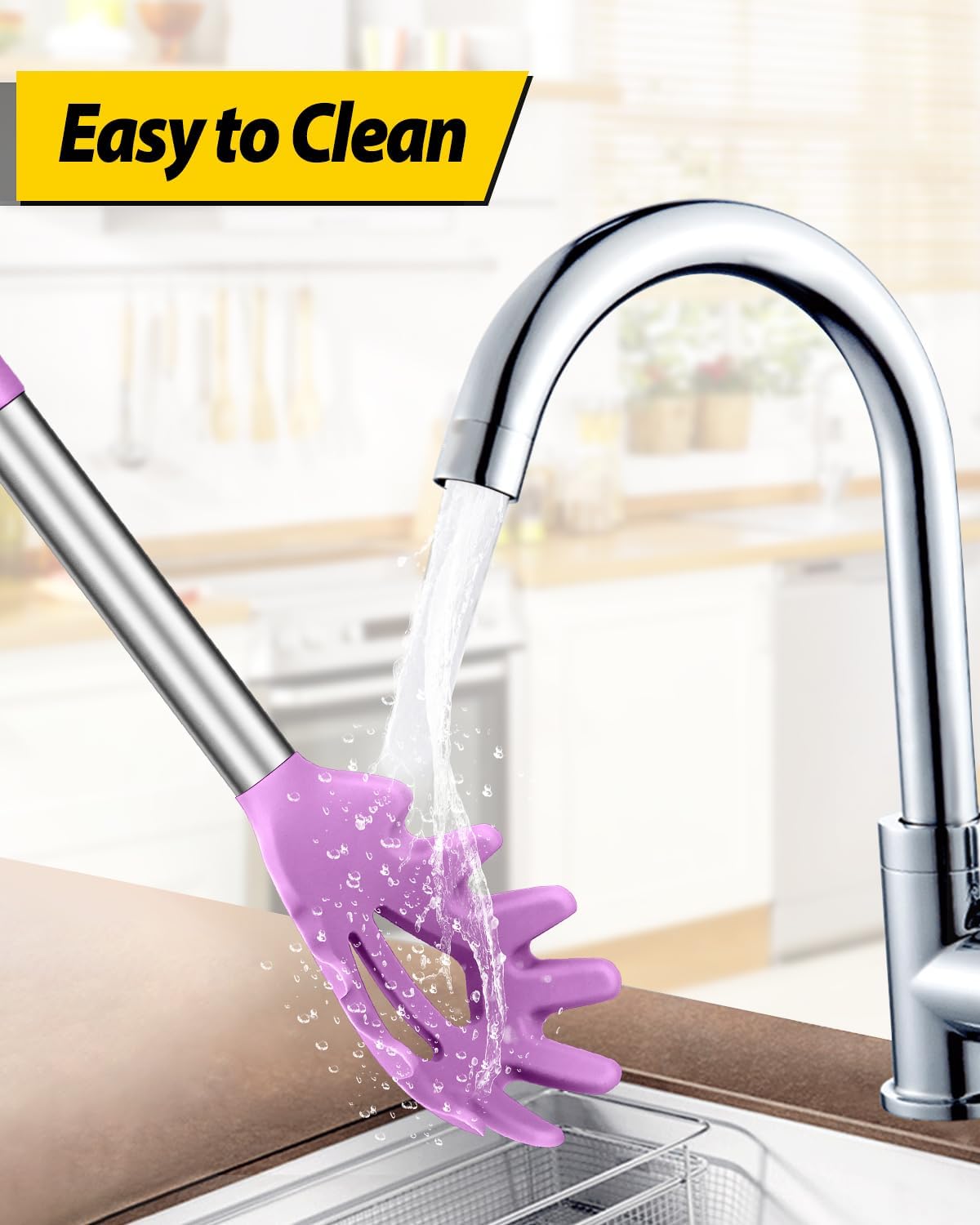 Silicone Pasta Fork and Ladle Spoon Set, Large Non Stick Kitchen Utensils for Cooking,Stirring,Serving Spaghetti, Soup, Sauce (PURPLE)