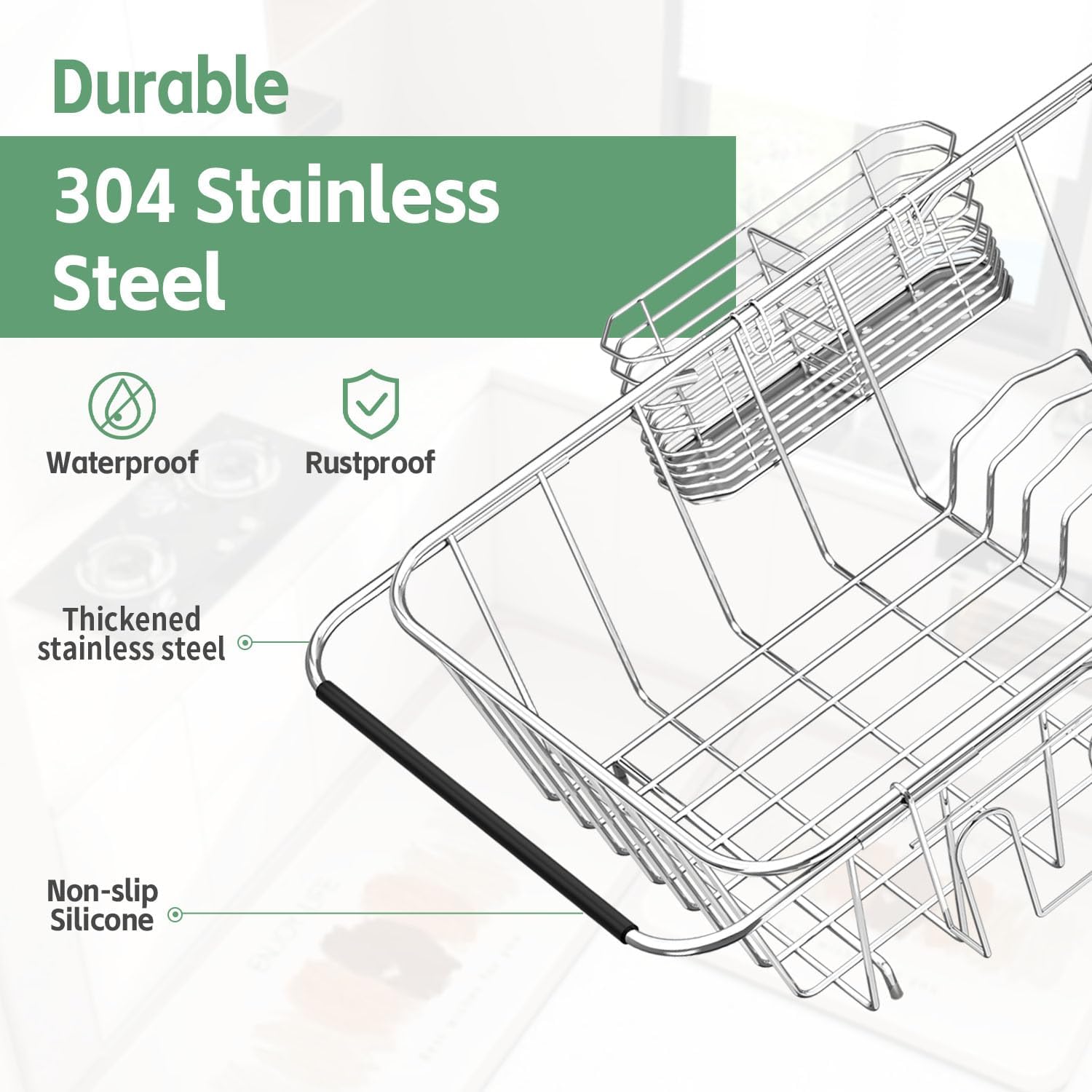 - 【Non-Slip Expandable Arms】The arms of the drainer rack are adjustable from 15.08" to 20.59", which makes it suitable for most sizes of sinks, and very easy to handle