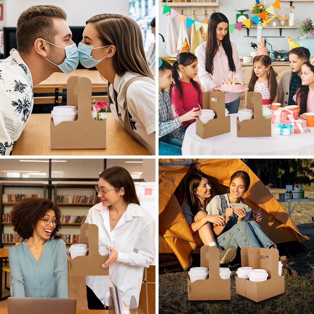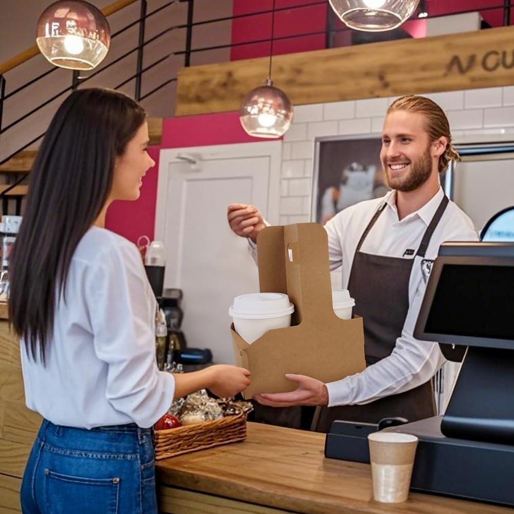 - 【Durable & Eco-Friendly Kraft Paperboard】Made of heavy-duty kraft paperboard, our 2 cup disposable drink carrier resists water, tears, and humidity. Unlike flimsy paper cup holders, it securely holds 8–30oz cups, ideal for hot coffee or iced beverages. recyclable and moisture-resistant, it’s a green 2 cup carrier for eco-conscious brands