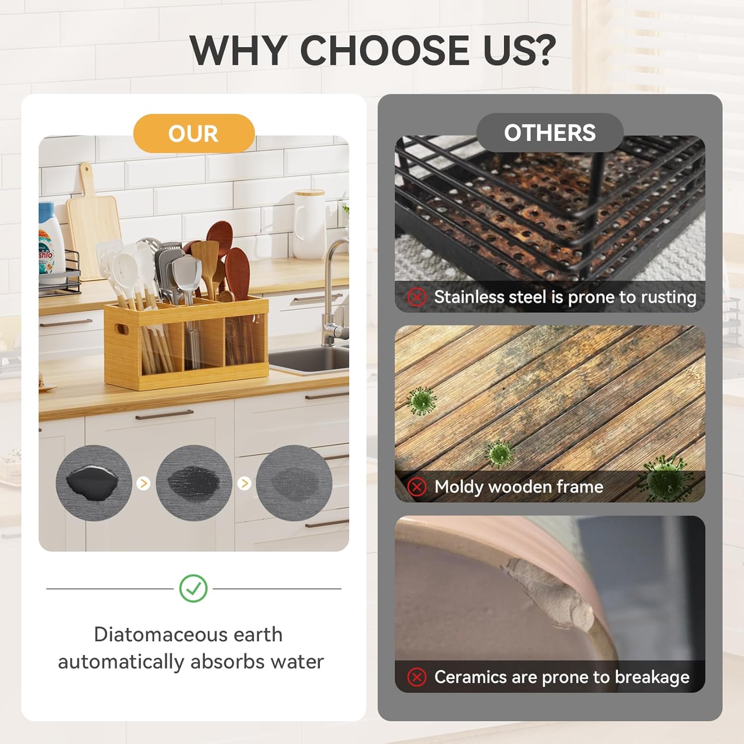 - 【Versatile Storage Solution 】: Perfect for organizing various kitchen utensils including spoons, spatulas, and cooking tools. The spacious compartments accommodate large utensils while keeping them easily accessible
