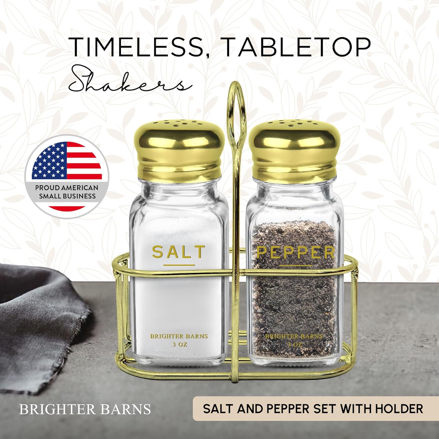 - A TOUCH OF CLASS IN EVERY MEAL - Instantly upgrade your kitchen or dining table with our modern take on the classic salt and pepper shakers with holder. Designed to complement any decor style, from contemporary luxury to cozy farmhouse and chic minimalist, this set is the charming accent your countertop deserves.