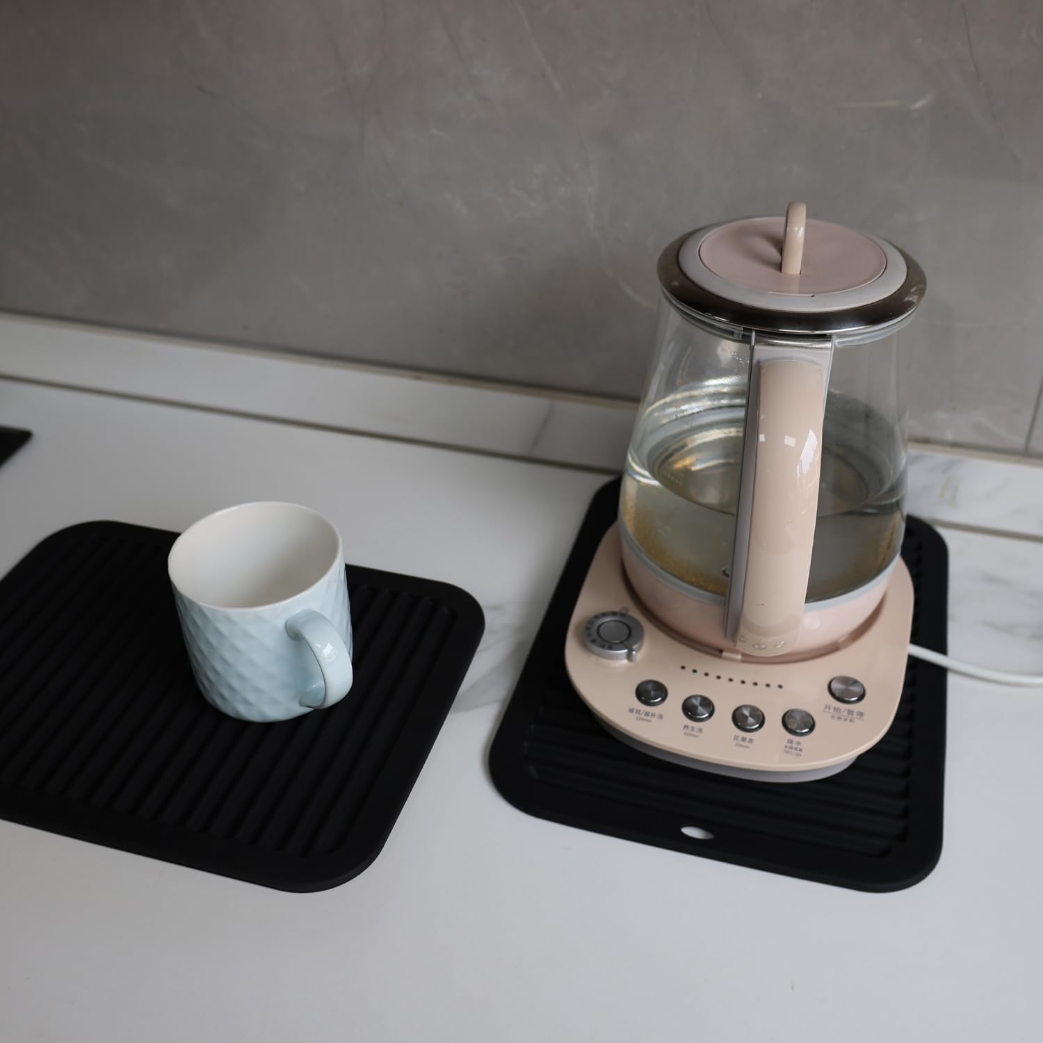 Trivets for Hot Dishes 4 - Pack Heat Resistant Pot Holders for Kitchen | Non - Slip Hot Pads for Hot Pots, Pans & Quartz Countertops | Black Kitchen Silicone Mats