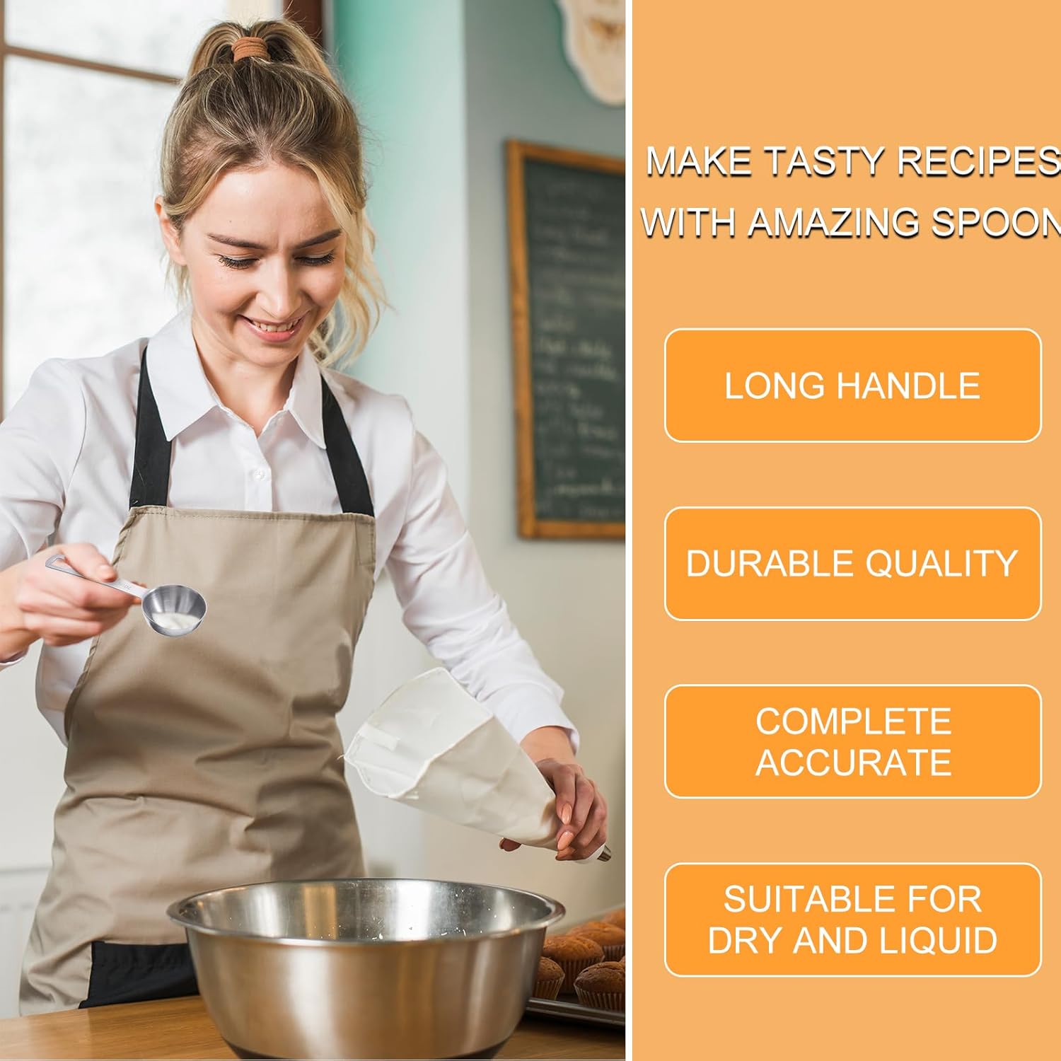 - 【Thoughtful Design】Our 4 tsp measuring spoon is thoughtfully designed, combining the essence of the cup-shaped round head design and the long handle design. This allows the small measuring spoons to easily penetrate into spice jars and other small containers, effectively overcoming the problem of spice spillage and spoon storage, bringing you an unprecedented convenient experience
