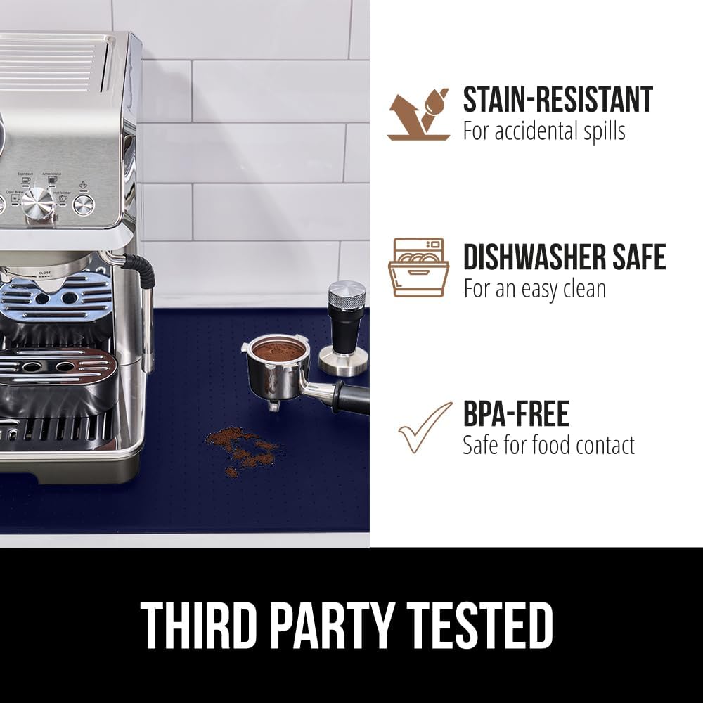 GORILLA GRIP Silicone Coffee Mat, 15x23, Espresso Drink Bar Station Accessories, Waterproof Heat-Resistant Dish Drying Mats, Stay in Place on Kitchen Counter, Home Kitchen Decor Essentials, Navy