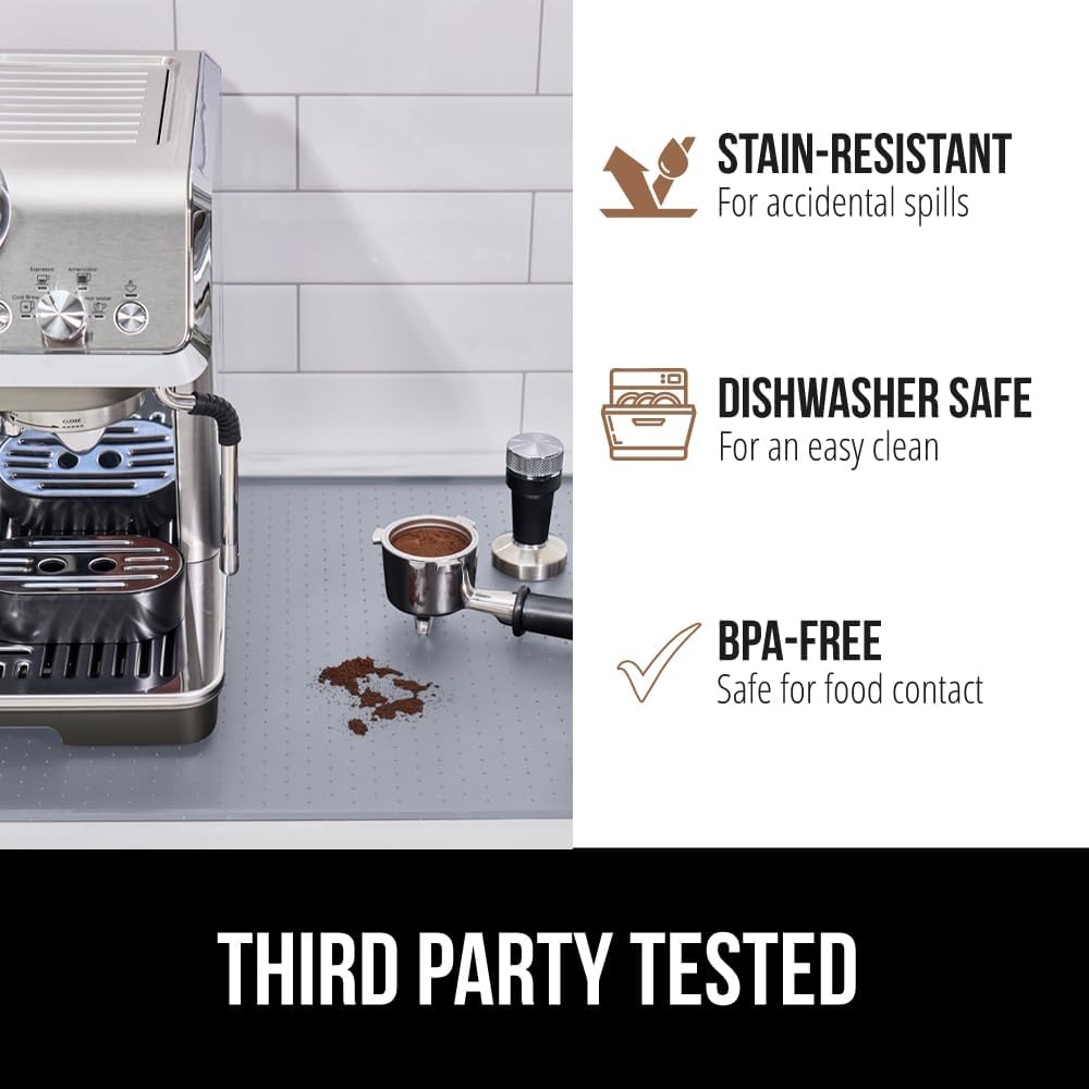 GORILLA GRIP Silicone Coffee Mat, Espresso Drink Bar Station Accessories, Waterproof Heat-Resistant Dish Drying Mats, Stay in Place on Kitchen Counter, Home Kitchen Decor Essentials, 10x14, Gray
