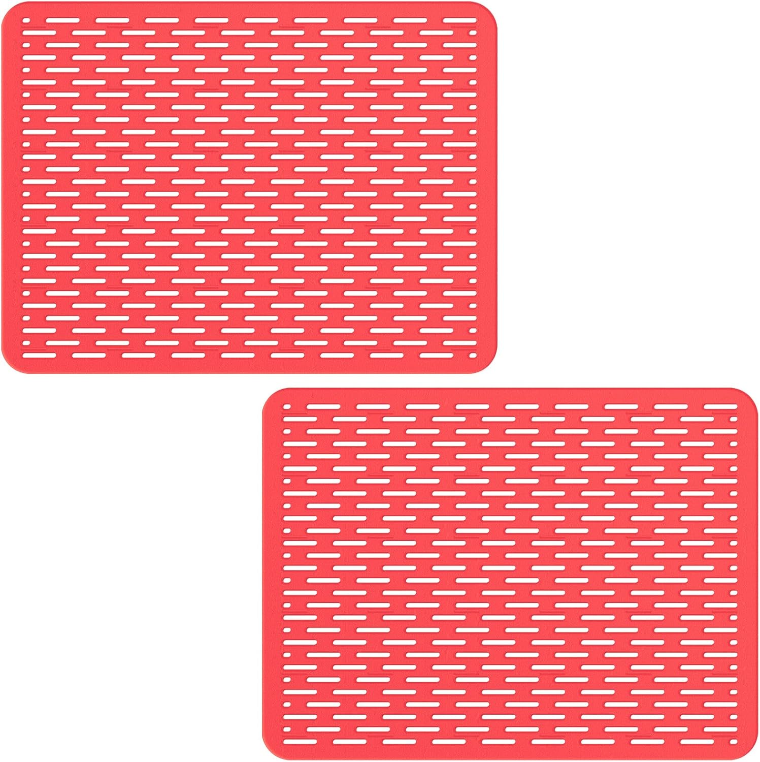 Bligli Mesh Sink Mat, 15.7 x 11.8inch Sink Prtector Mats for Kitchen Sinks, PVC Eco-Friendly Sink Protectors for Bottom of Sink, Fast Draining, Easy Cleaning, Clear Red