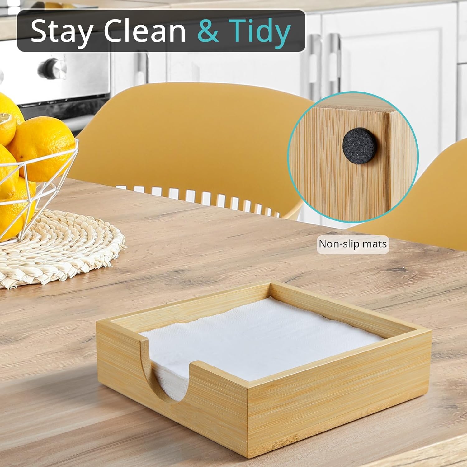 - Complementing Home Decor: The napkin holders for kitchen are an easy addition to your tabletop décor. You can keep napkins neatly presented and always within reach in your dining room, on your coffee table, kitchen countertops for daily use. In addition, this napkin holder adds style to any dining setting, whether casual or formal.