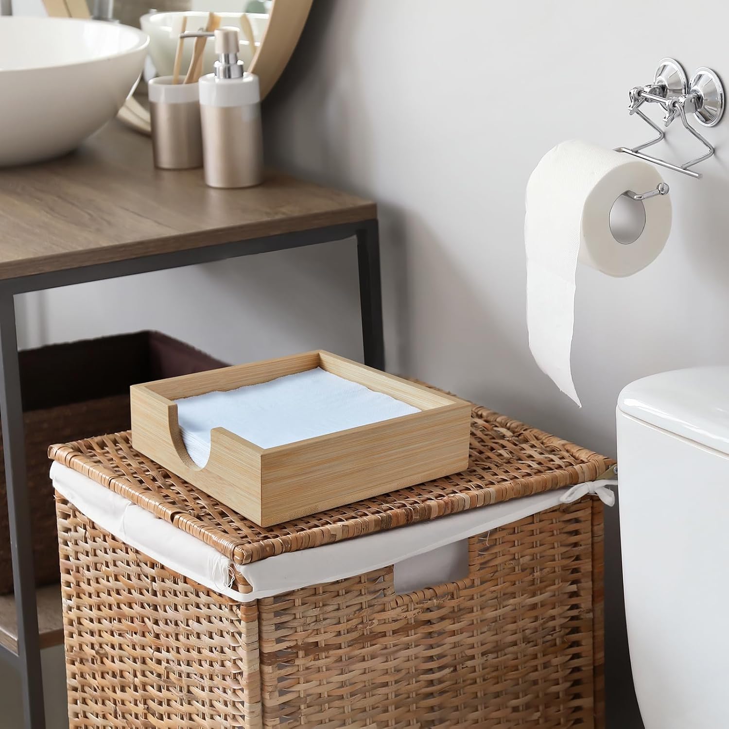 - Handmade From Solid Bamboo: The napkin holder for table is handmade from bamboo, sturdy, ensuring that it will be a staple on your table for years to come. And easy to clean, wipe it gently with a damp cloth. Perfect decoration for your table, countertop, kitchen, bathroom, restaurant, Christmas table decor, etc. Natural color and simple design makes it suitable for various styles of houses.