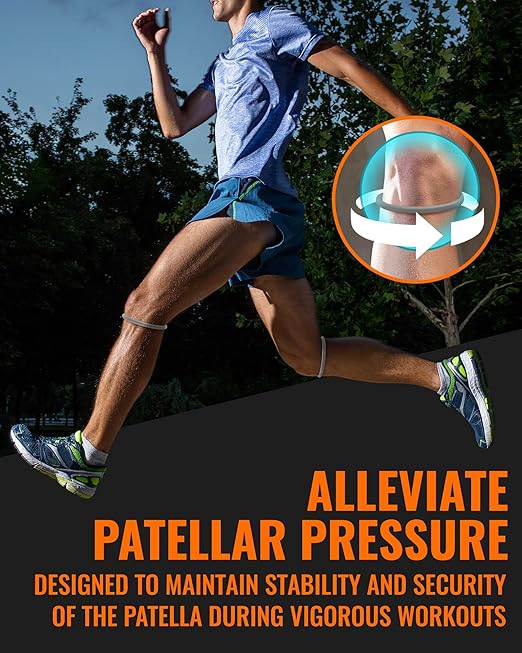 - Thoughtful Design: The GREBIKE patella band is ergonomically designed to provide excellent support and stability for the knee joint during exercise. The soft and elastic silicone material perfectly conforms to the knee's contours, offering better support and comfort while helping to alleviate discomfort in the patellar tendon and knee pain. Enjoy the pleasures of sports without worry.