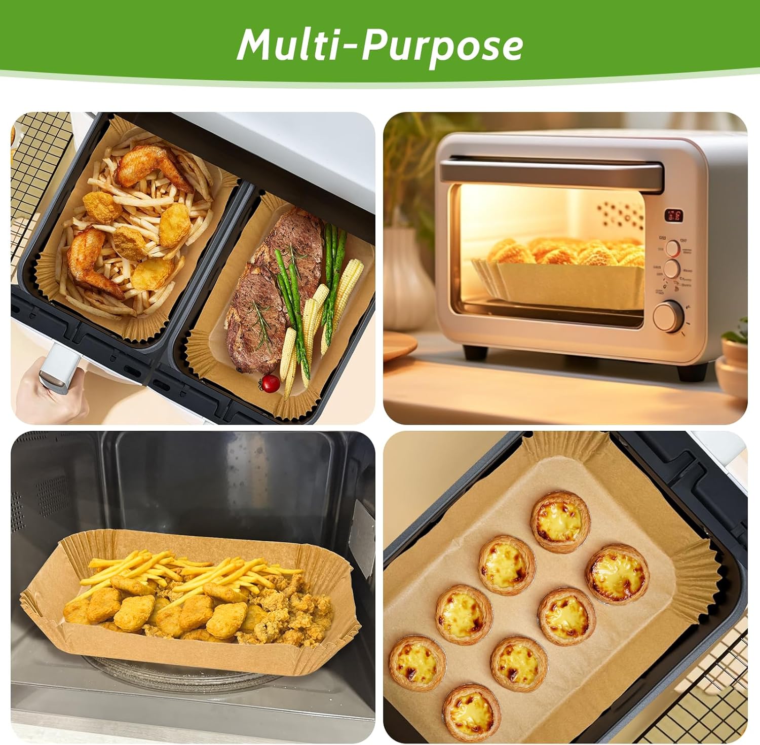 - 【Food Safe】:Made of premium food grade unbleached natural paper and silicone coating, these air fryer liners are BPA-Free & PFAs-Free, they won’t release harmful substances during your baking.