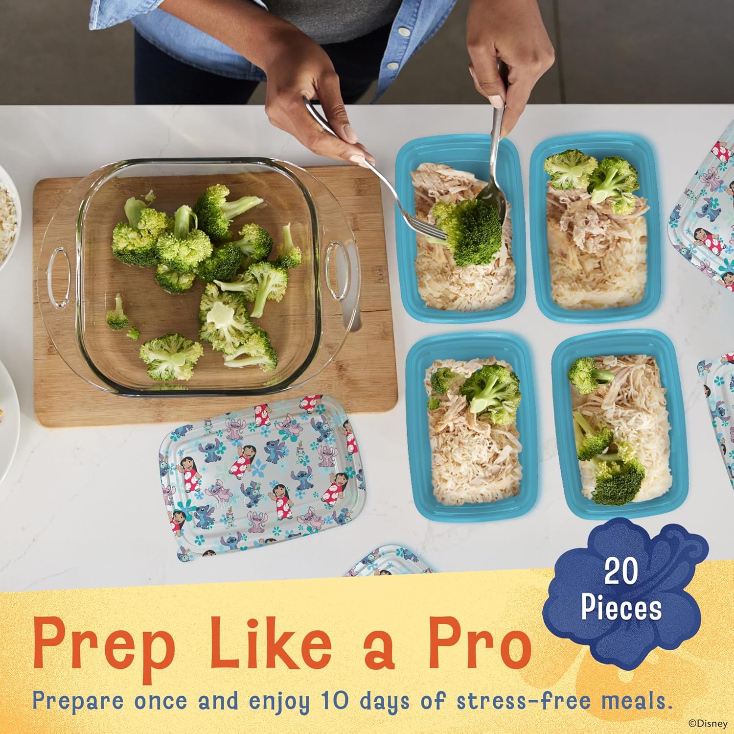Disney Meal Prep Containers - 20-Piece Reusable Food Containers with Lids - Freezer, Microwave & Dishwasher Safe - Featuring Mickey & Minnie, Lilo & Stitch