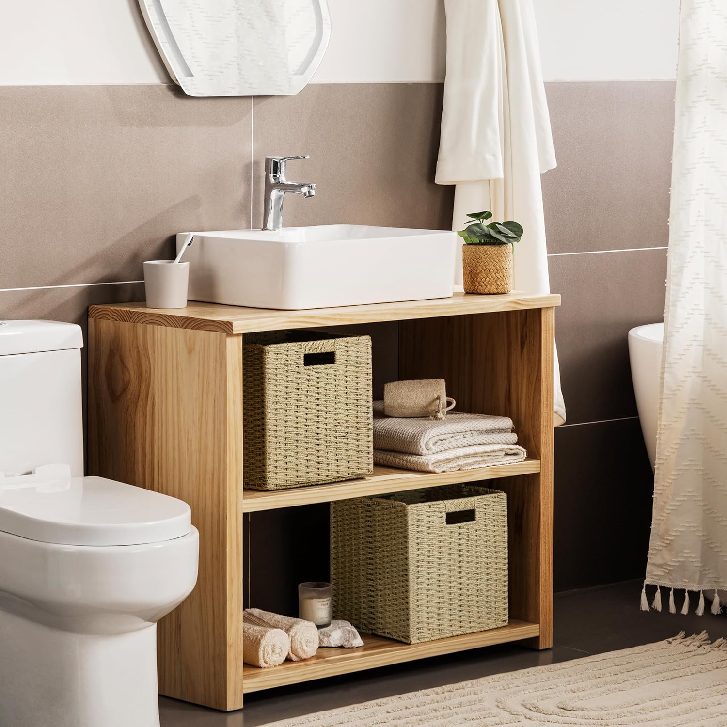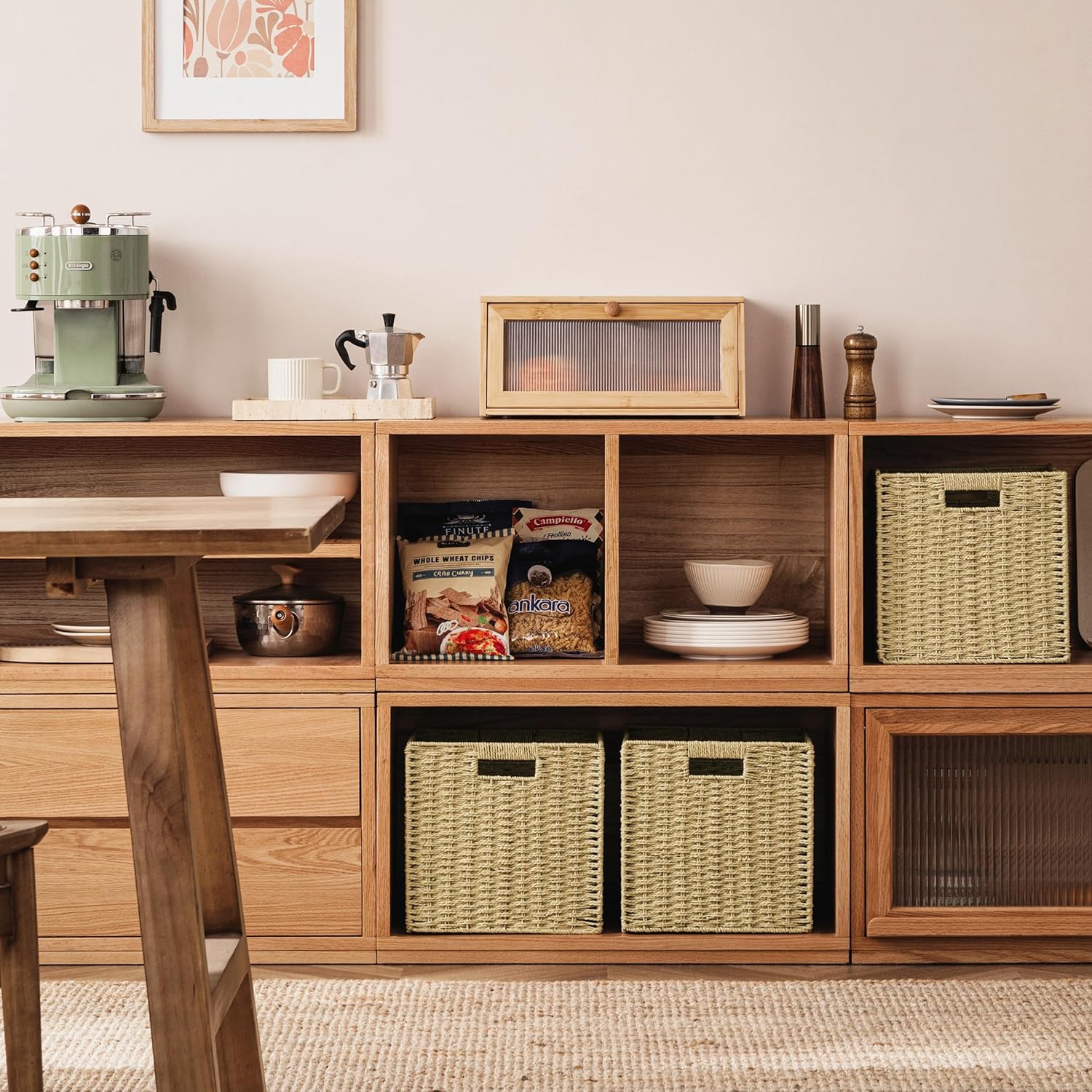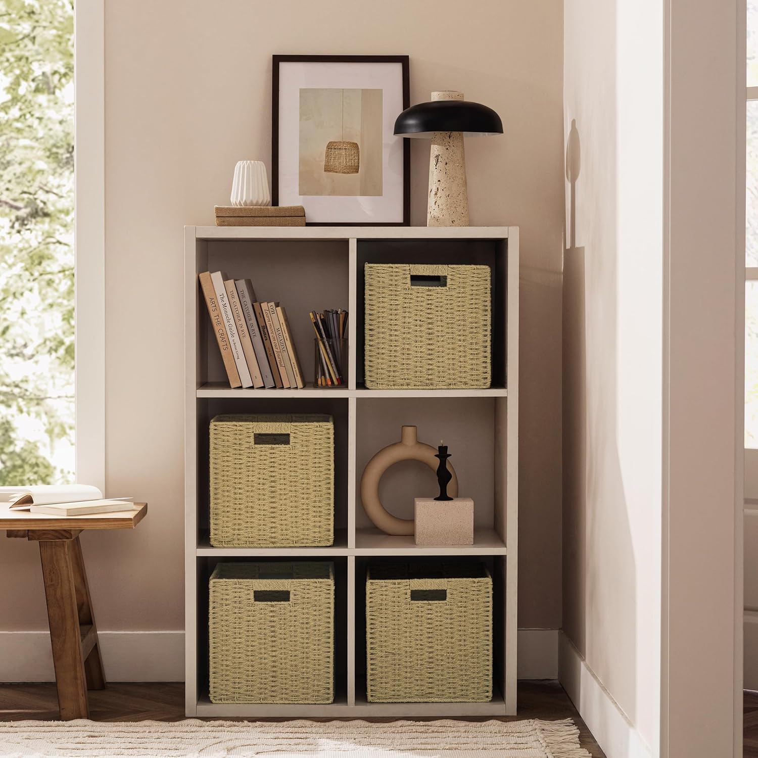 UBBCARE 3 Pack Wicker Basket, 11L×11H×10.5W inch Woven Paper Rope Storage Baskets for shelves, Foldable Cube Storage bin with Handle, Storage Basket for Organizing & Decor, Natural