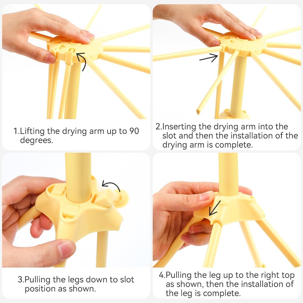 - 10 Sturdy Drying Rods & Spacious Design – Effortlessly dry up to 300 noodles (30 per rod) with 10 durable plastic rods. Each rod supports noodles up to 20" long, while the 11.1" optimal height ensures efficient airflow for quick, even drying. Perfect for homemade pasta, ramen, or crafts.
