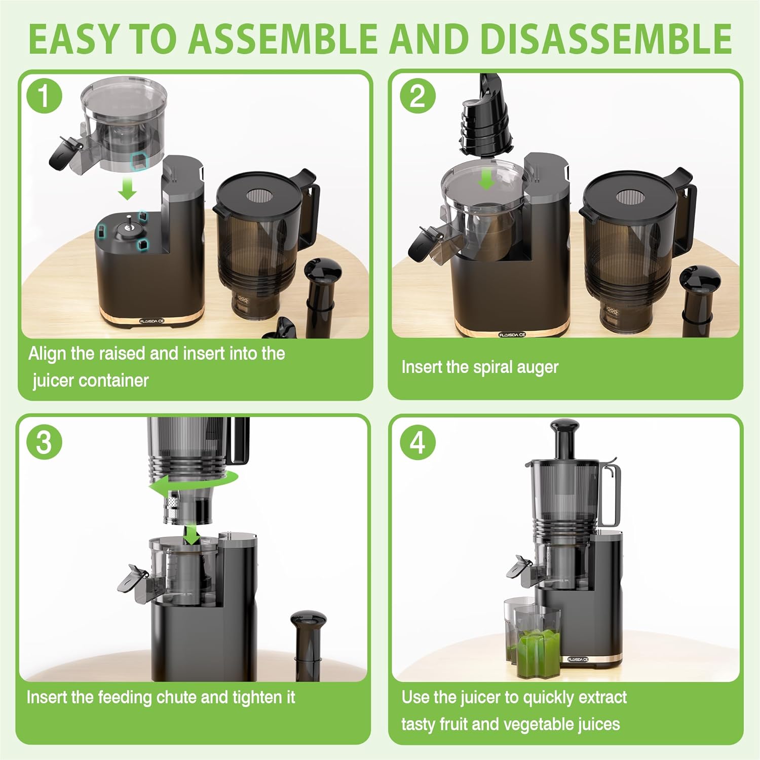 - Easy Disassembly and cleaning: Our juice extractor is easy to assemble and disassemble with 3 main parts in seconds, and easy to operate with one-button control. Also, the juice maker machine packaged with push rod and cleaning brush for quickly clean, saving your time and energy.