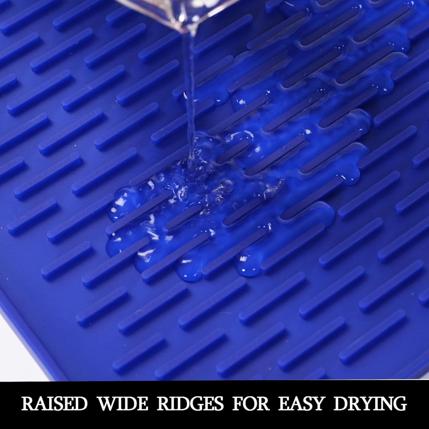 Dish Mat Silicone Dish Drying Mats Works For Drying Stemware Cocktail Glasses Silverware Pots Pans Knives and Dish Rack for Kitchen Counter Sink Bar Pads Easy to Clean (11.5" x 9.1") Blue