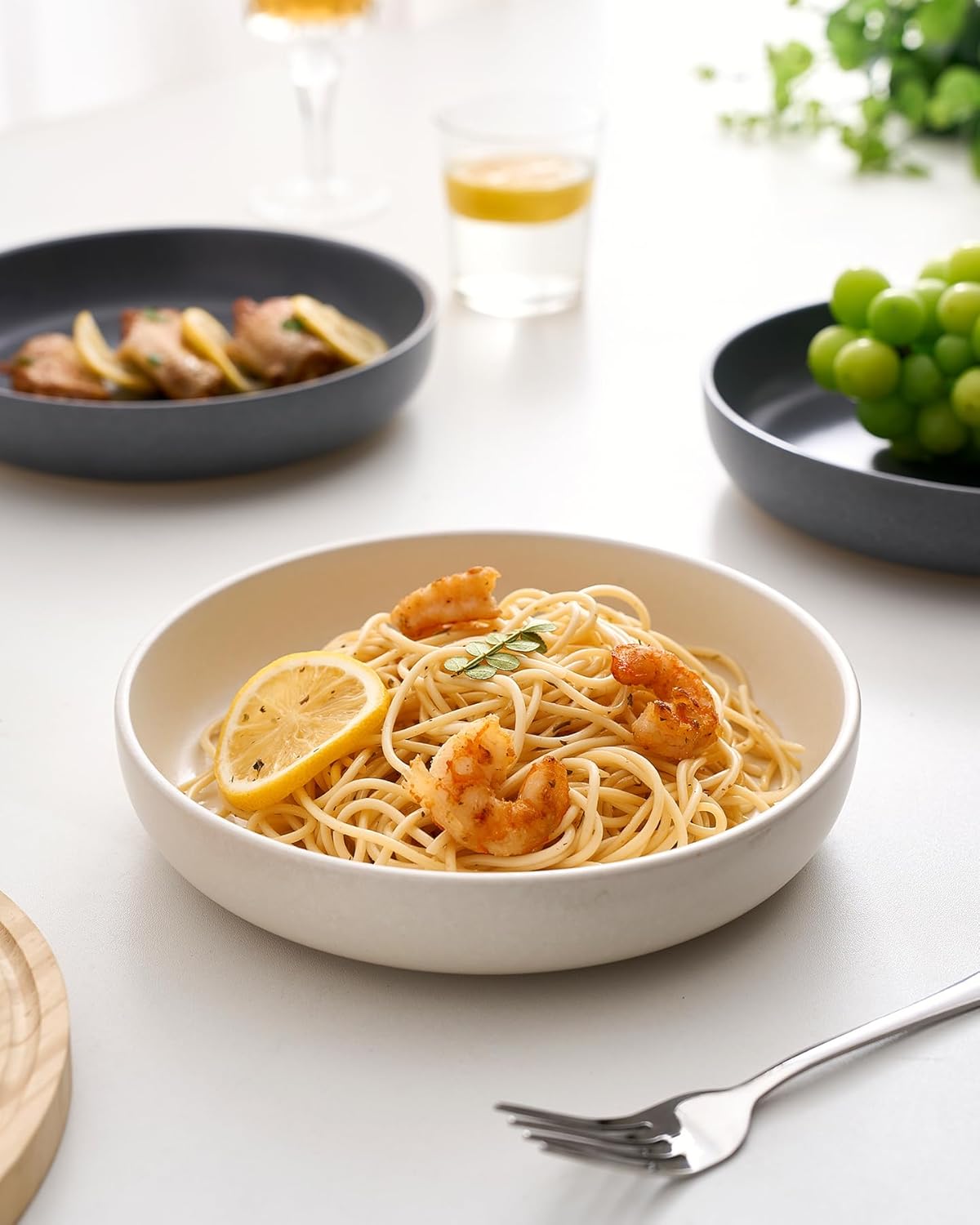 famiware Milkyway 33 oz Bowl Set, Pasta Bowls Set of 4, Salad Bowls, Double Reactive Glaze, Sturdy & Stackable, Ideal for Housewarming, Festivals, Dark Charcoal & White Full Glaze Matte