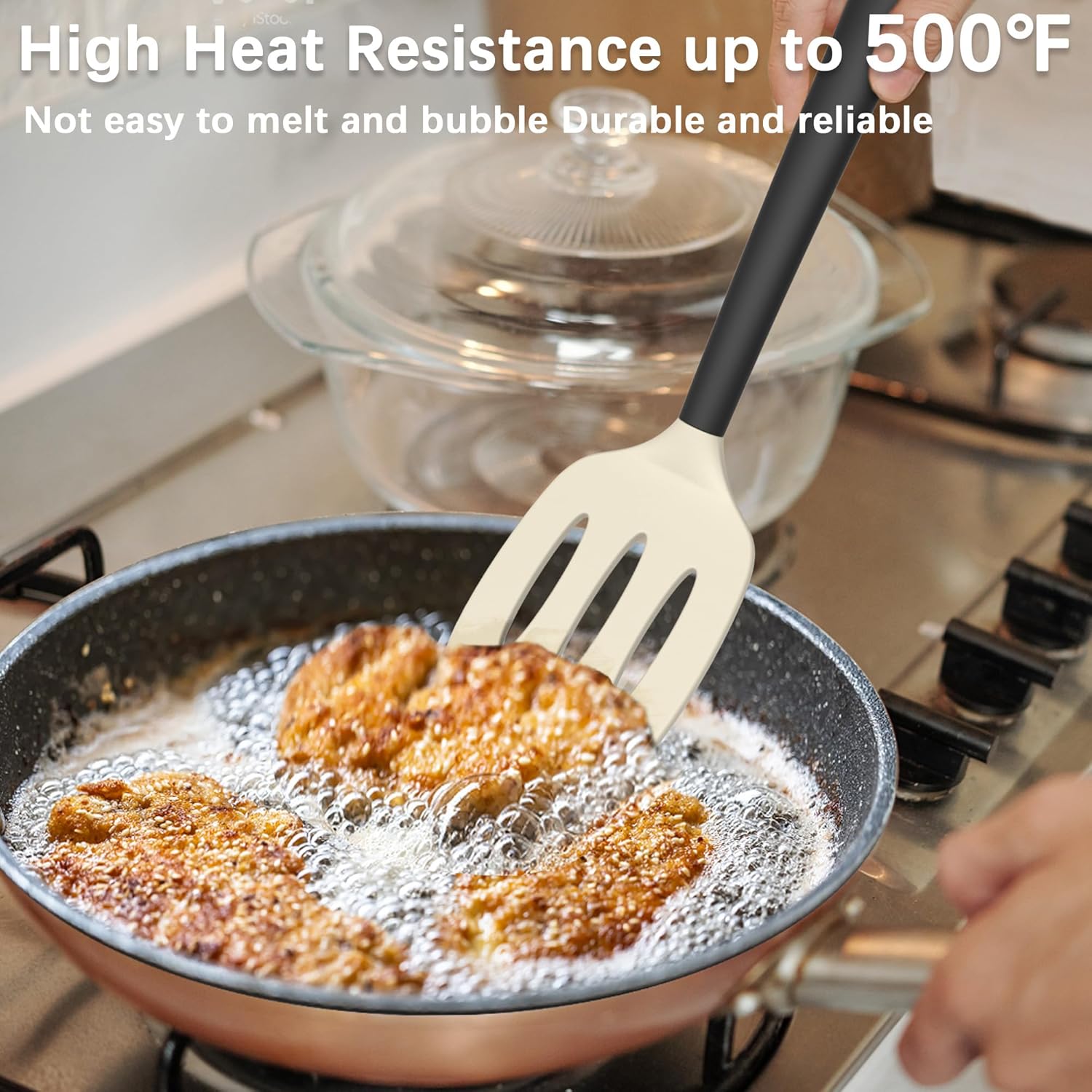 - [Comfortable Silicone Handle]: These silicone kitchen utensils are designed with a sturdy plastic core and thickened silicone handle for a firm, heat-insulated grip, the slim head ensures precise control