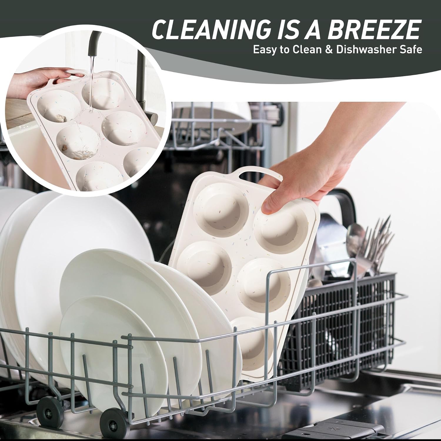 - 【Effortless Release Every Time】Experience 1-second demolding! Simply press the flexible food-grade silicone base to pop out cupcakes intact - no scraping or greasing required. Ideal for sticky recipes like caramel pecan muffins or gooey chocolate lava cakes. Our baking cupcake muffin pan can be safely placed in the dishwasher, and the silicone baking cupcake muffin pan material reduces oil residue by 85% compared to metal baking pans, making it easy to rinse even with simple running water.