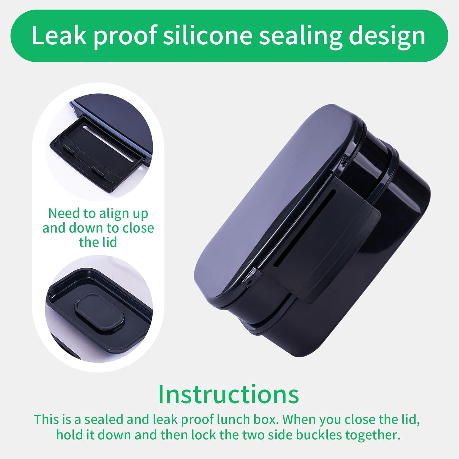 - Large capacity bento box: It has 2 stackable compartments that can accommodate a 48 ounce silicone sealing lid, divider, dipping container, fork, spoon, knife, and sealing tape.
