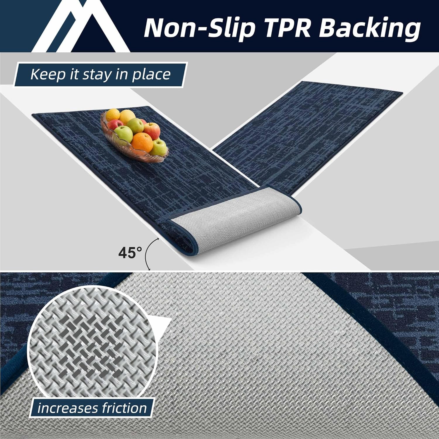 COSY HOMEER Kitchen Rugs 20"x32"+20"x48" Absorbent Soft Kitchen Mats for Floor Non Slip Kitchen Runner Rug Polyester Washable Kitchen Floor Mats for Sink Mat,Hallway,Laundry,Navy Blue