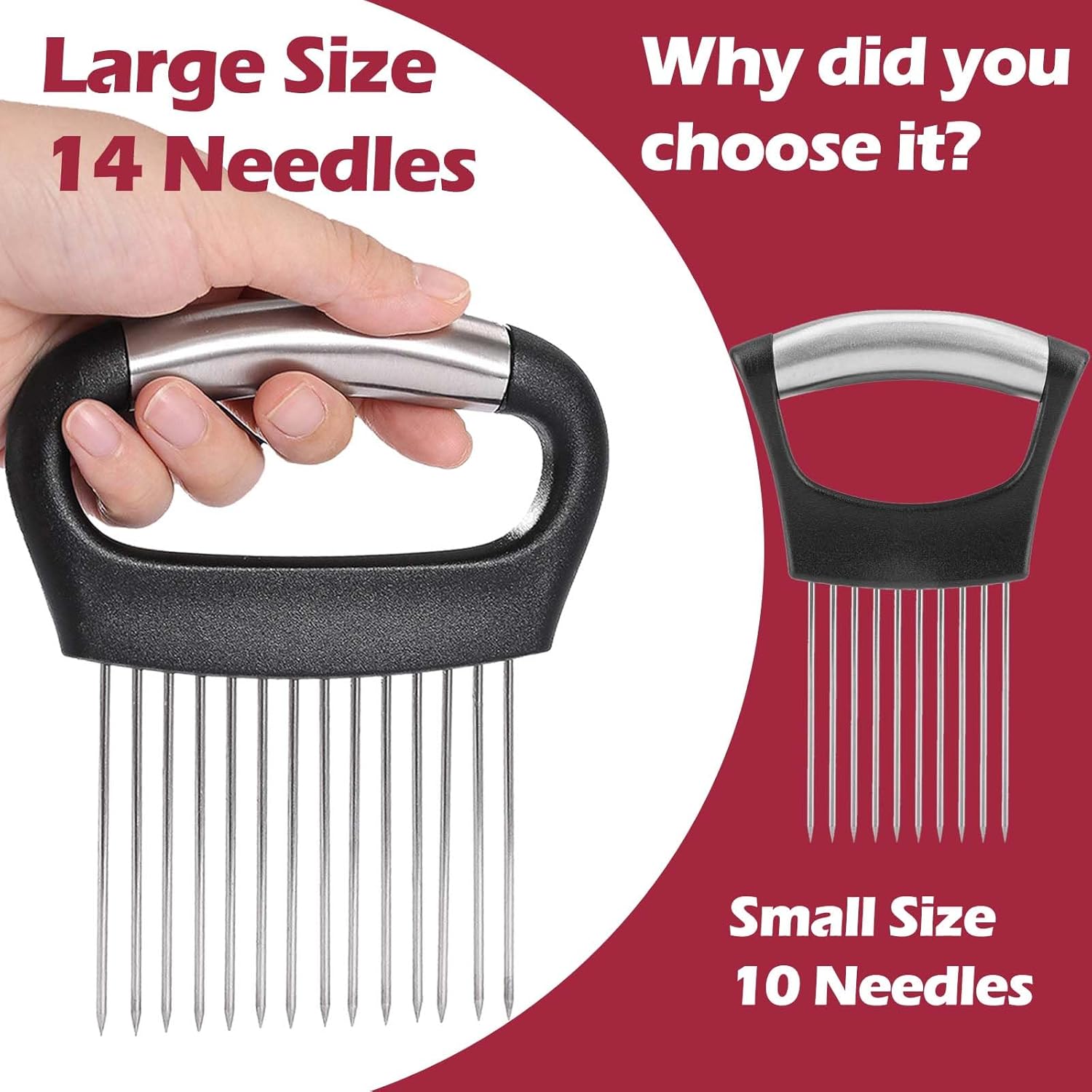 JAYVAR Large Onion Holder for Slicing, 2Pieces Large Onion Cutter Veggie Chopper, Stainless Steel Tomato Slicer Blooming Onions Potato Slicer, Practical Meat Tenderizer, Egg Slicers Kitchen Gadgets