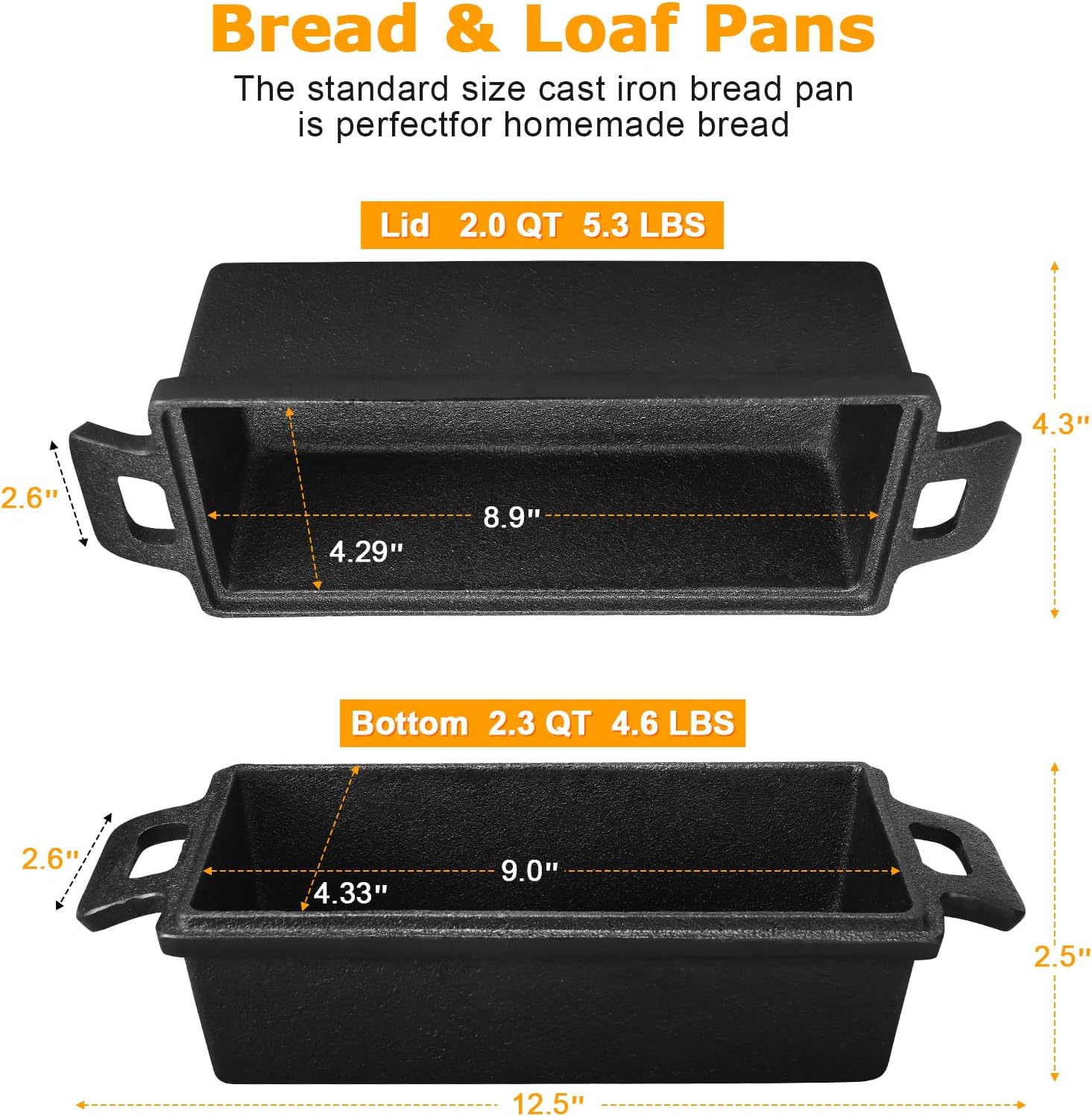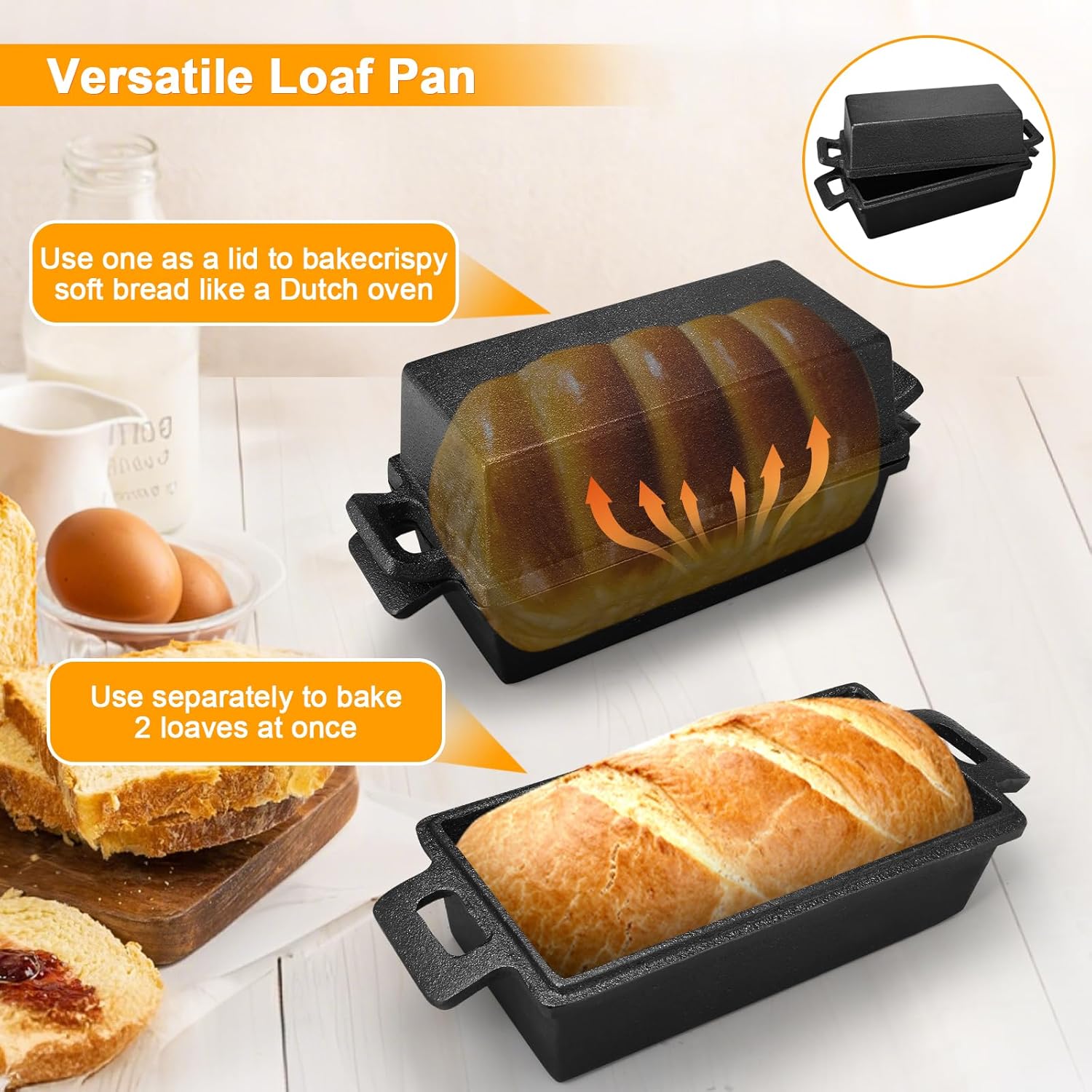 - Widely used:2 in 1 sets cast iron loaf pan not just for bread,This pan is versatile enough for meatloaf, pound cakes, and other baked goods,Safe on all cooking surfaces, including induction, and oven safe up to 500°F