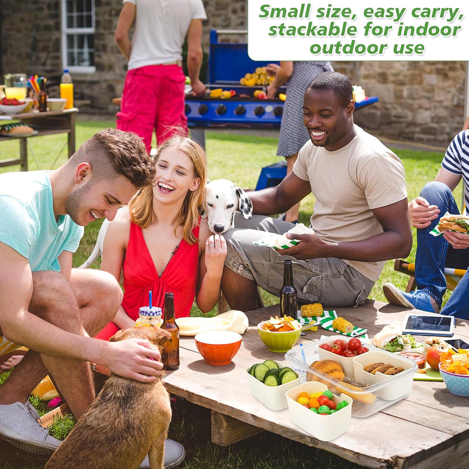 - 【Portable Charcuterie Container】The divided serving tray with lid is stackable for easy carry, perfect for indoor and outdoor use like gatherings, parties, kitchen use, movie night, watching ball game and beach camping, picnic and travel for portable size.