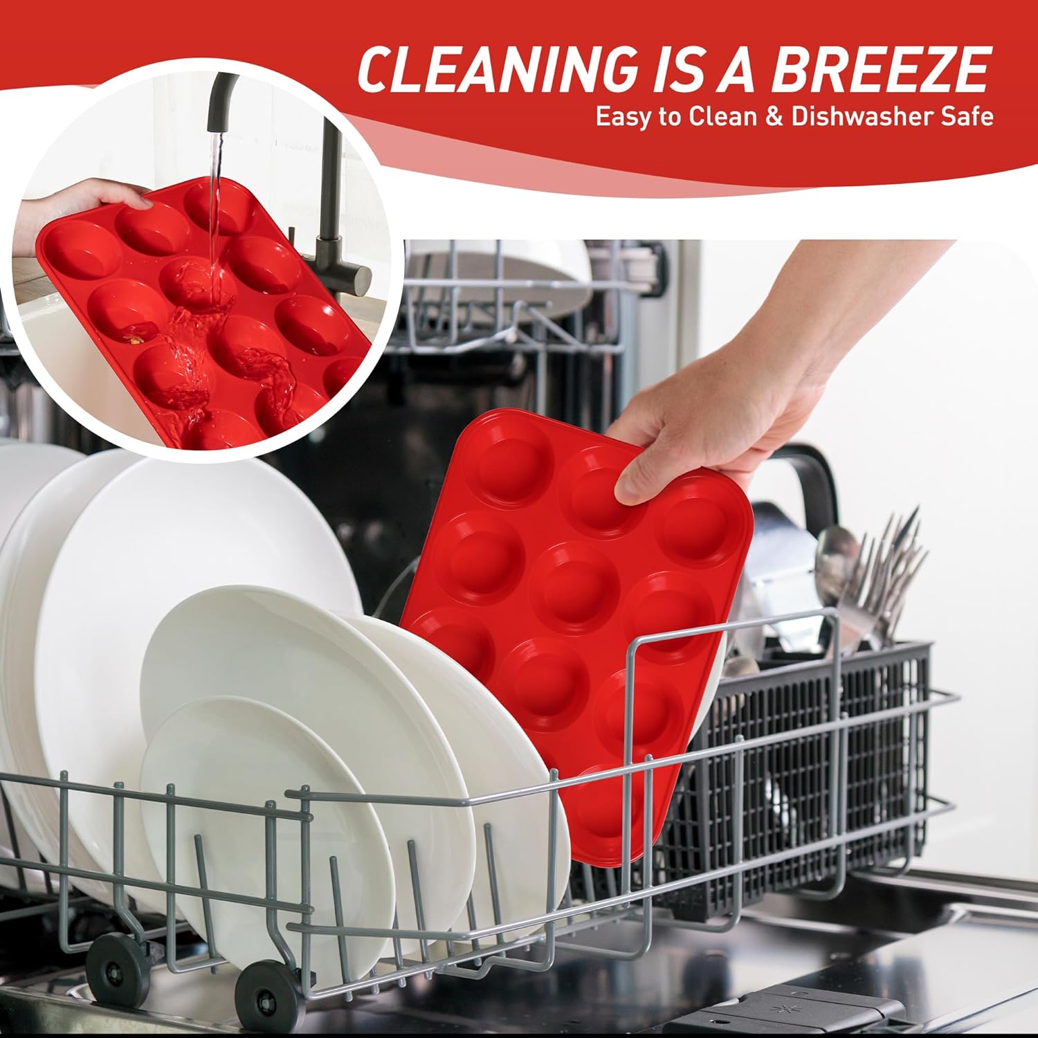 - Food Grade Silicone Muffin Tray: Safe for the oven, microwave, dishwasher, fridge, and freezer. With an impressive heat resistance range from -104°F to 446°F, it’s perfect for all your favorite baked goods. thick walls prevent heat transfer to countertops – safer than other thin plastic baking cupcake muffin pans. Food grade silicone of our baking cupcake muffin pans, maintaining 99% "like-new" appearance after heavy use.