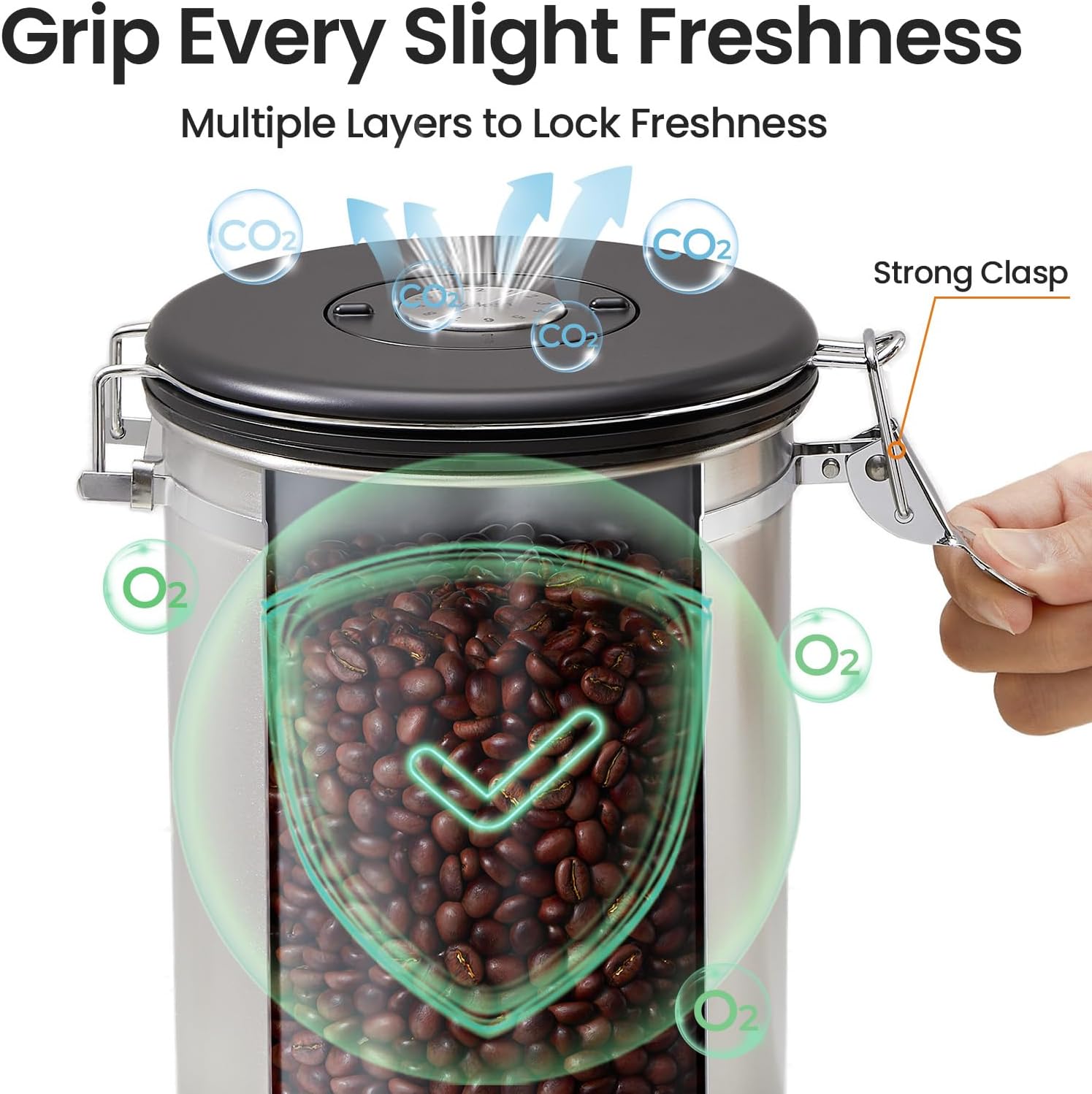 - 【Reason to Choose Veken】Crafted from durable 304 stainless steel, Veken coffee canisters put forth our strength to preserve more freshness of each coffee bean. Every detail is designed with your coffee experience in mind. Choose Veken for reliable, elegant coffee storage that enhances your daily coffee experience.