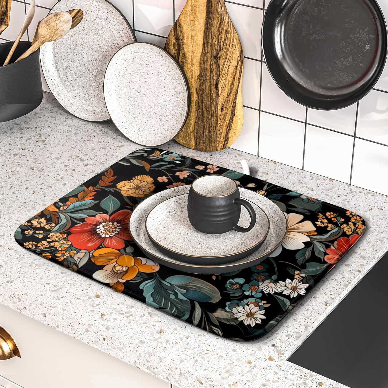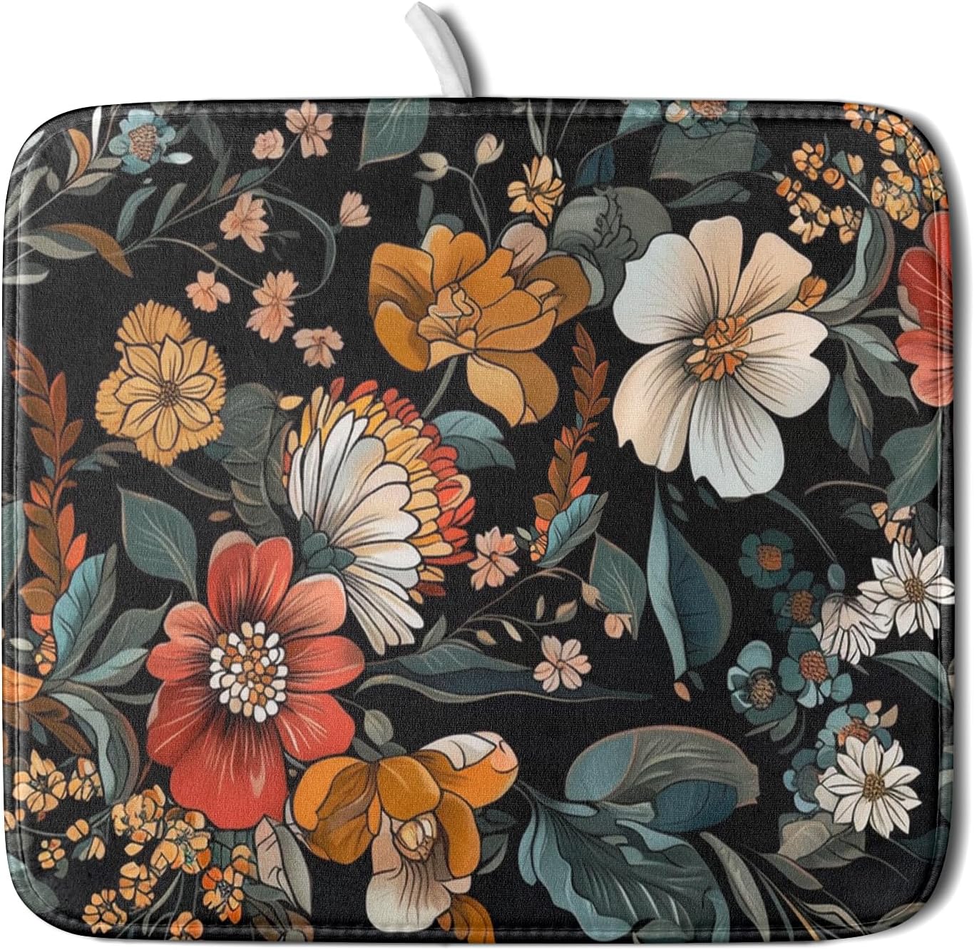 Vintage Floral Dish Drying Mat 16x18 inch Boho Flower Drainer Mats Fast Dry Absorbent Washable Dish Rack Pad Protector Kitchen Accessories