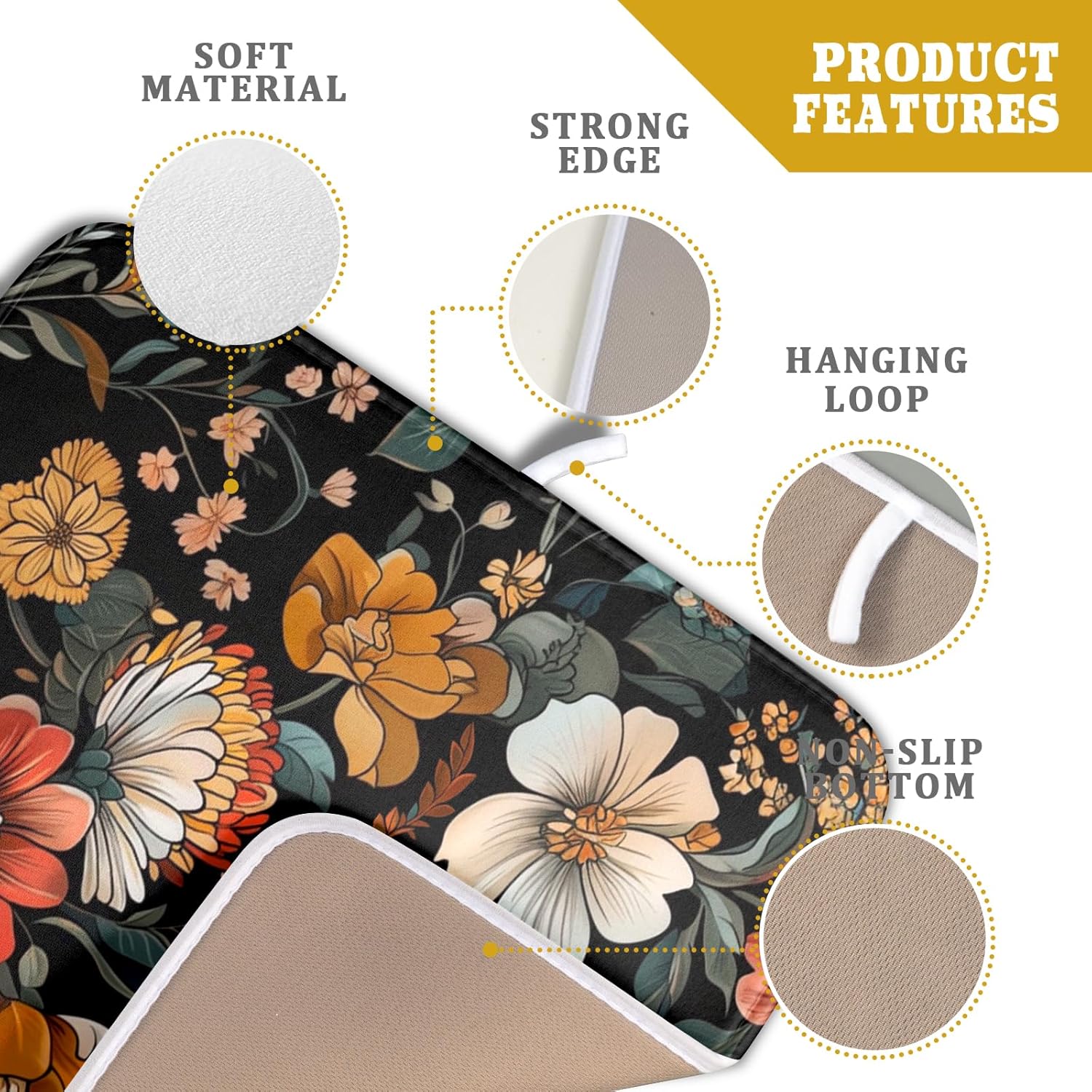 - 【Easy to Storage】This vintage flower design drying mat with hang rope, soft and foldable, durable, easy to storage it by hanging or folding it up in a drawer or tuck it elsewhere. Perfect for tight spaces like campers, boats and cottages where having a dual purpose item will come in handy.
