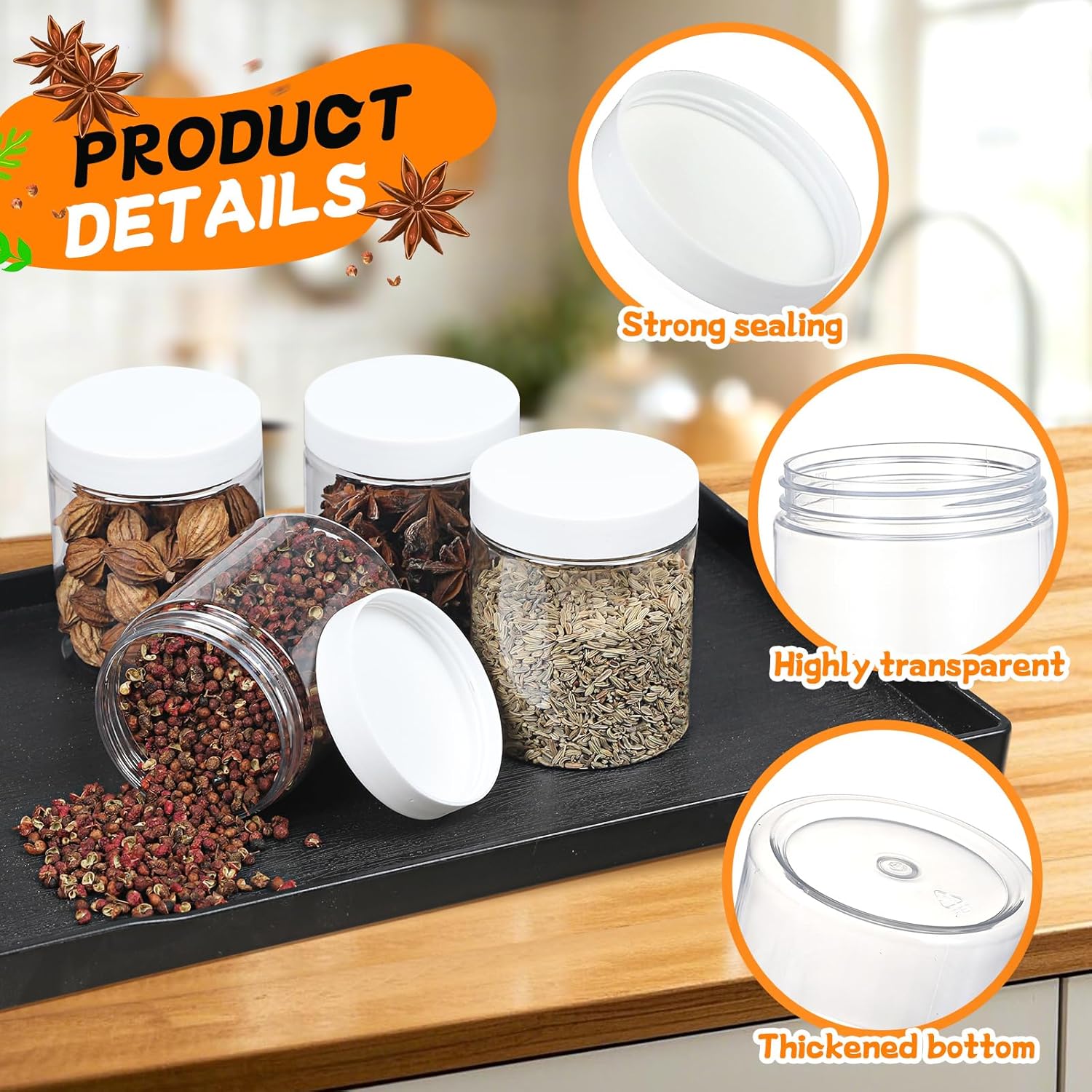 - 【Quality Material】 These empty clear plastic jars with lids are made of food grade quality plastic material