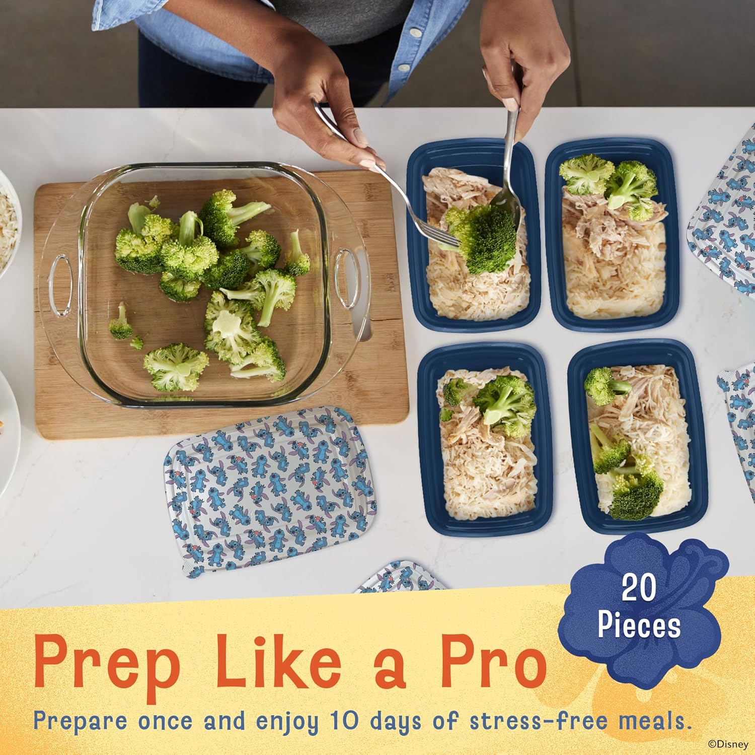Disney Meal Prep Containers - 20-Piece Reusable Food Containers with Lids - Freezer, Microwave & Dishwasher Safe - Featuring Mickey & Minnie, Lilo & Stitch