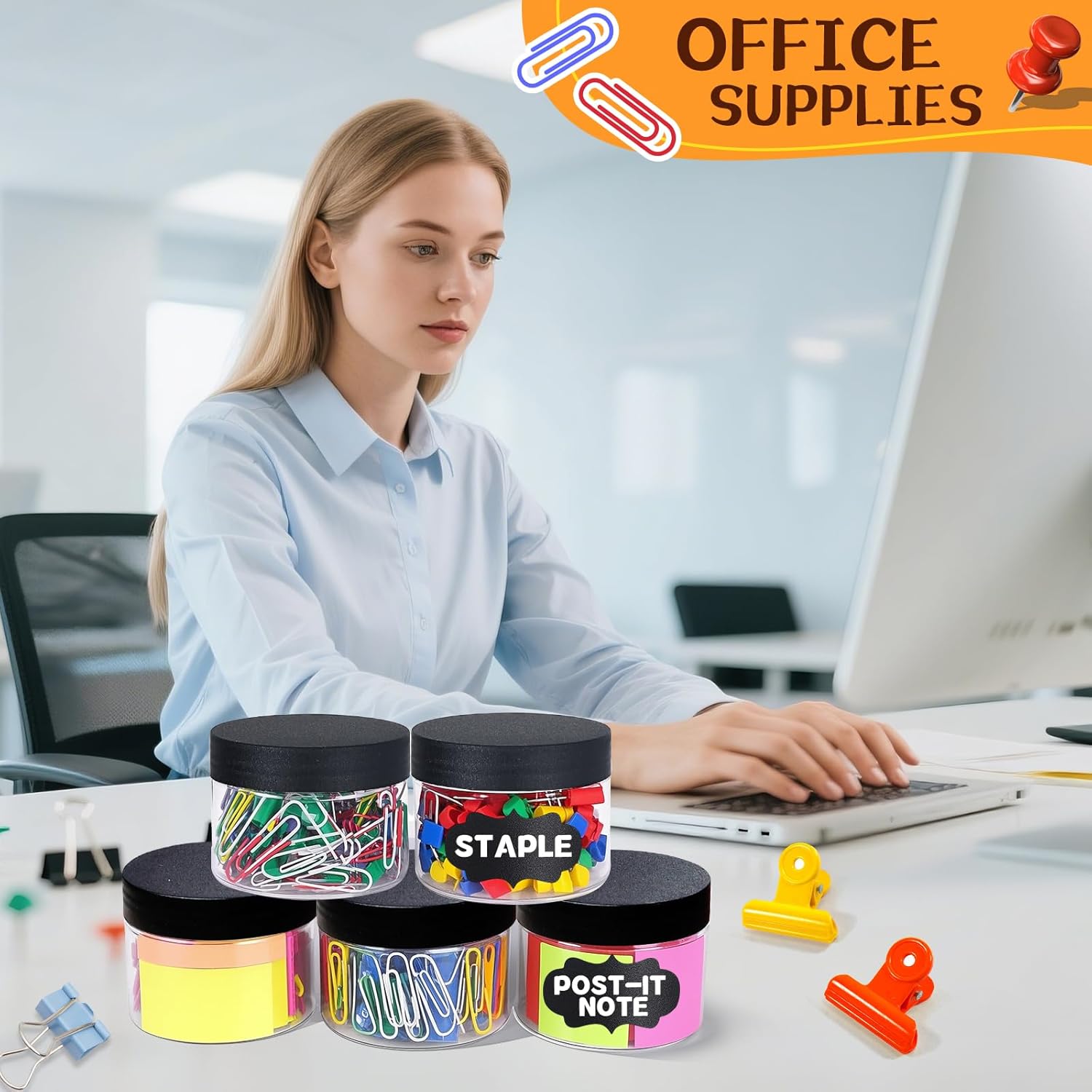 72pcs 4 oz Plastic Containers with Lids Labels Leak Proof BPA Free Airtight Refillable Clear Small Containers Storage Jars for Storing Dry Food Slime Honey Jam,black