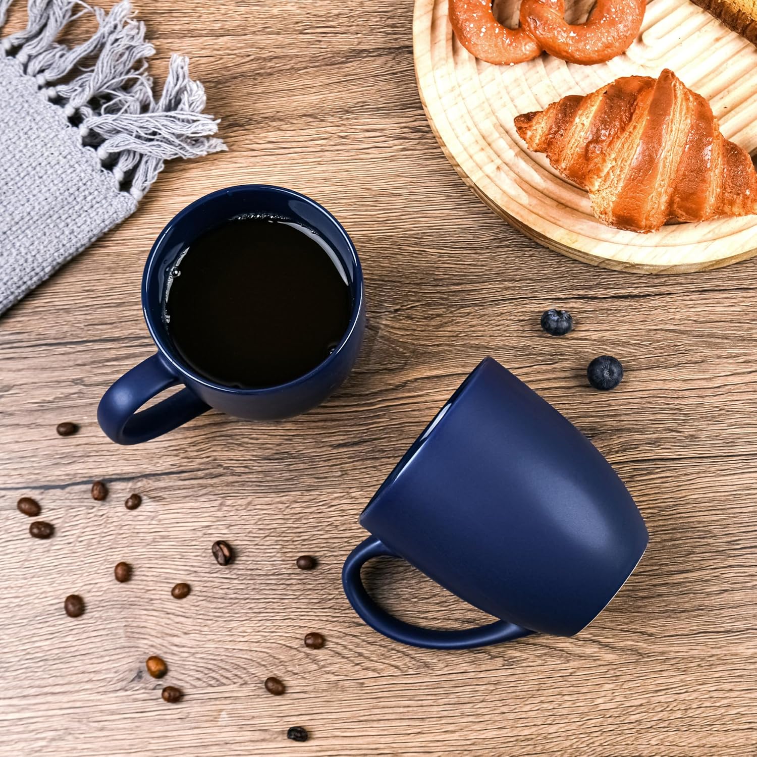 16oz Coffee Mugs Set of 6, Large Ceramic Modern Coffee Mugs With Handle For Tea,Latte,Cappuccino,Cocoa. Dishwasher.Microwave Safe (Matte Blue)