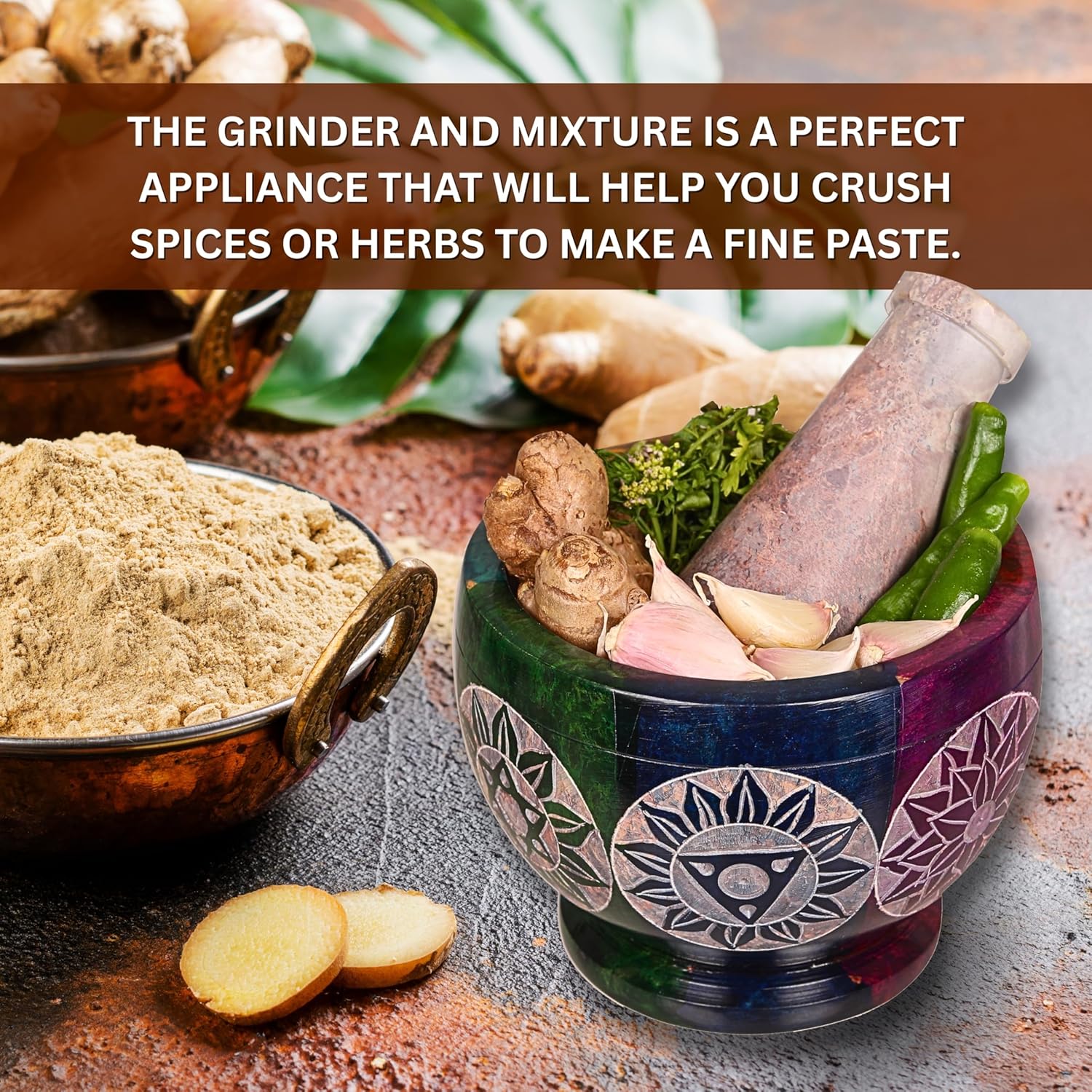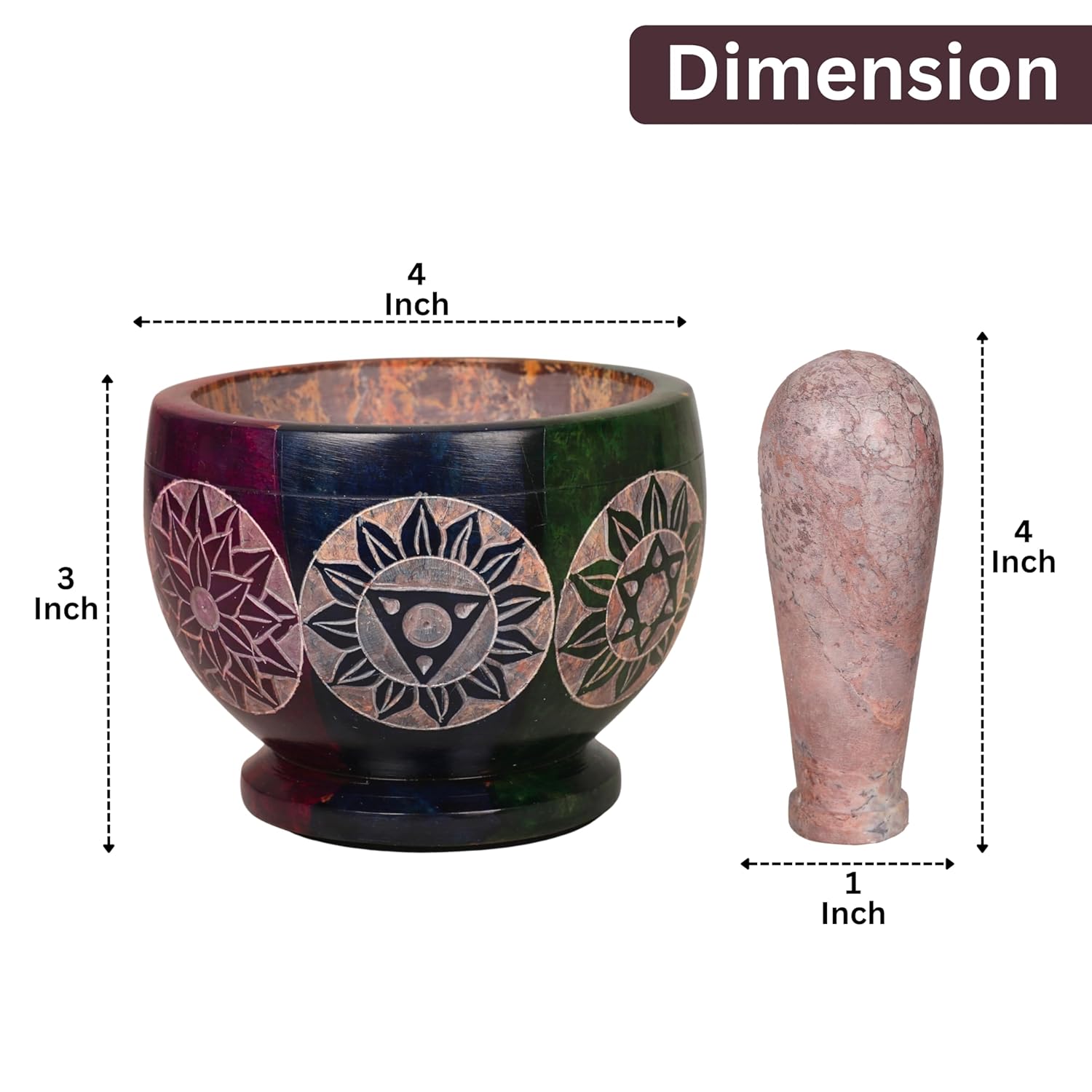 Mortar and Pestle, Made of Heavy Duty Polished Hard Stone, Natural Stone Grinder for Spices, Pastes, Herbs, Seasoning etc. (Rainbow)