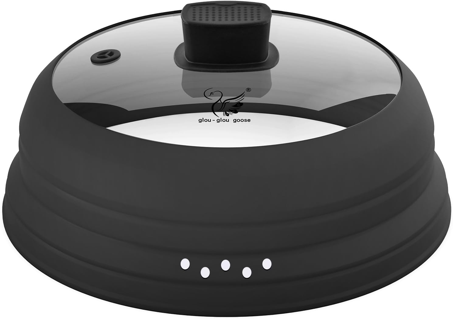 Microwave Splatter Cover Glass Cover Guard Lid with Collapsible Silicone for Food Pot Plate Cover 11.8 inch Black