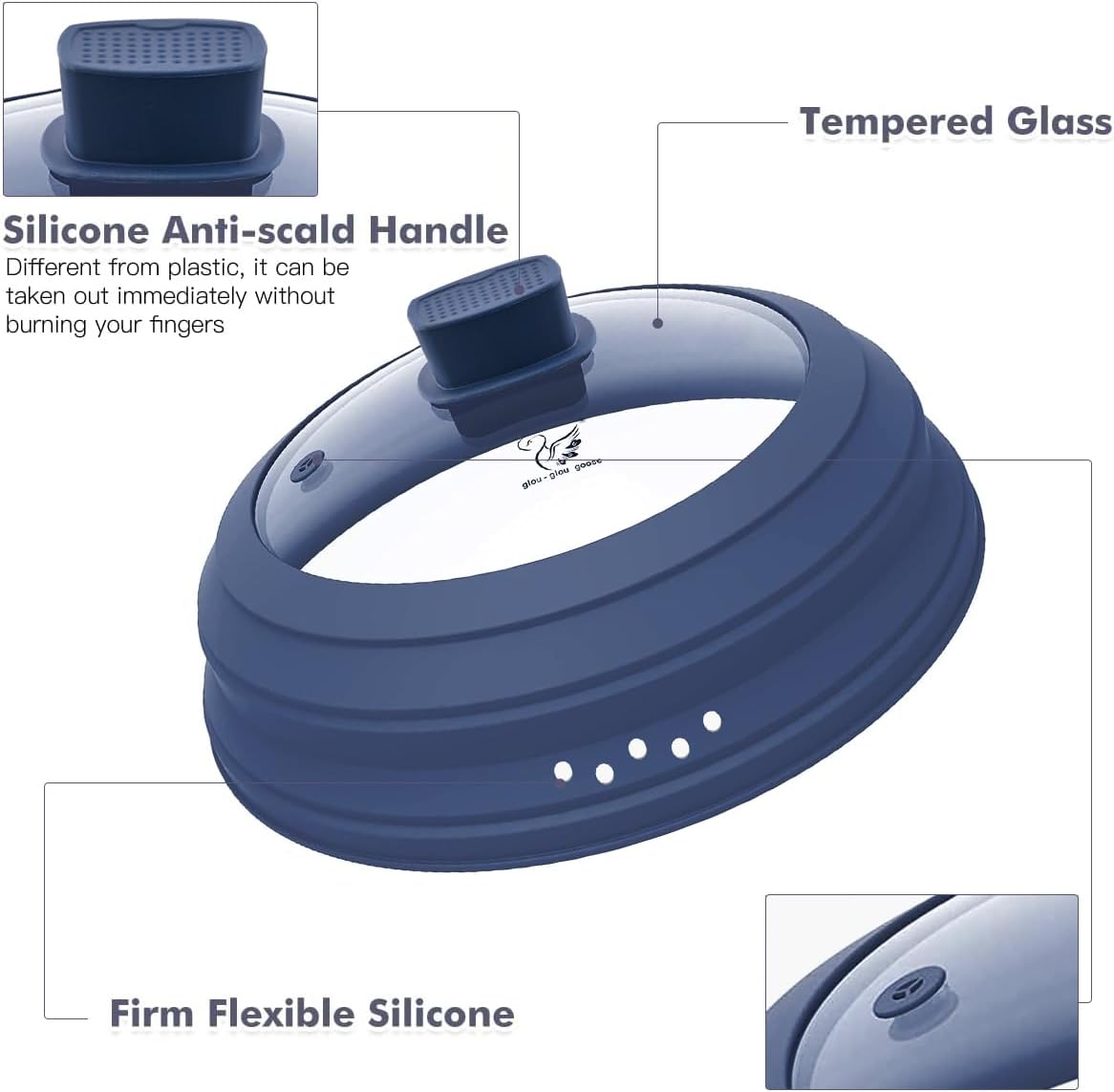 Microwave Splatter Cover Glass Cover Guard Lid with Collapsible Silicone for Food Pot Plate Cover 11.8 inch Dark Blue